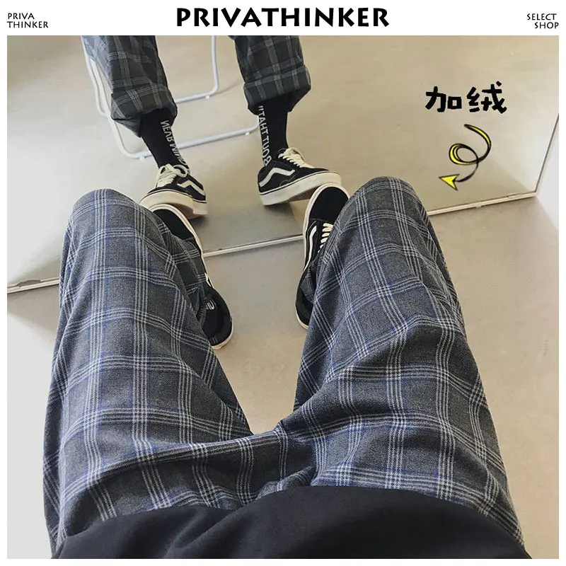 Privathinker мужские клетчатые прямые брюки 2018 мужские корейские модные шерстяные штаны мужские спортивные штаны повседневные зимние плотные брюки