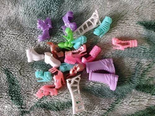 Большое спасибо за скорость! Очень быстро получила посылку, в рекордный срок. Обувь абсолютно вся целая, без брака. Таких пар, как на обе ноги две левые, например, нет. Вся обувь отлично подошла к барби и кукле марки "Деми стар". Есть один момент: не приятный запах от всех туфель. Очень чувствуется.... попробуем выветрить.... Иначе играть ими не очень приятно...