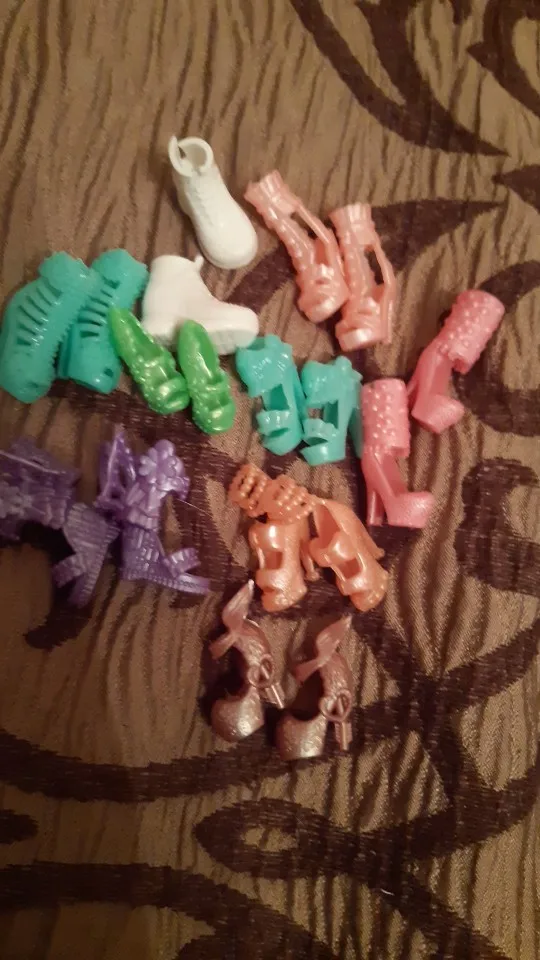 Хорошая обувь. На некоторых есть небольшие пятна. Две пары не по размеру на ножку Барби. А так всё ок пять⭐⭐⭐⭐⭐