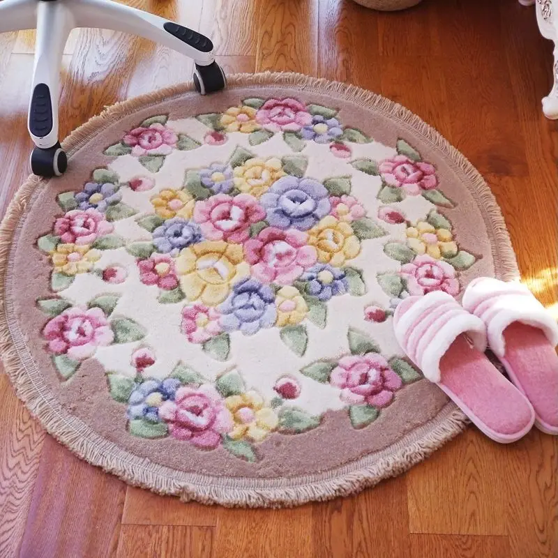 Круглый коврик для ванной с розовым цветочным принтом, нескользящий коврик для ванной, 80 см