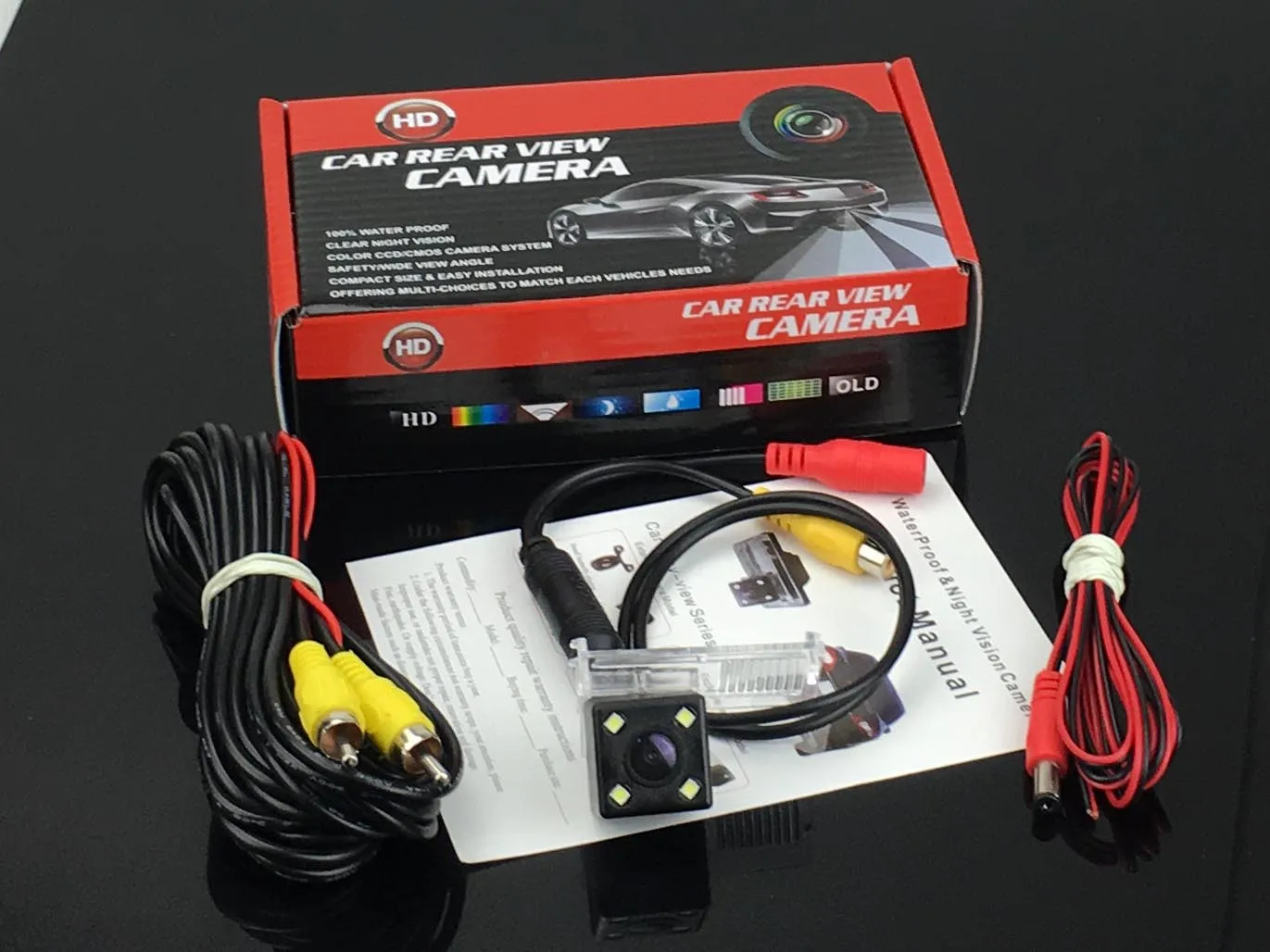 . Закрепите камеру там, где был светильник номерного знака.. Подключите встроенный светильник номерного знака камеры к тому месту, где был подключен светильник номерного знака, чтобы получить питание. Подключите питание камеры к тормозным огням-красный провод к положительному и черный провод к отрицательному.. Подключите видео кабель камеры к удлинительному шнуру.