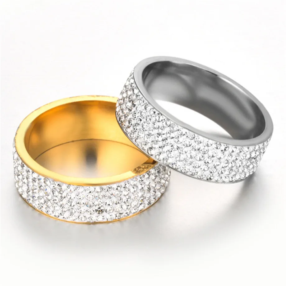 Мужское кольцо со сверкающими камнями в стиле хип-хоп, обручальное кольцо из нержавеющей стали золотого цвета с полной стразы, ювелирное изделие для мужчин и женщин