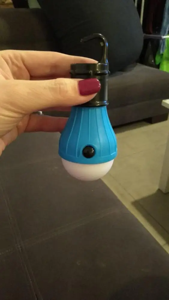 доставка терпимая. в целом за свои деньги топ! три мизинчиковые батарейки. из минусов!!! внутренняя плата лично у меня была плохо прикручена и по этому резиновый колпачок плохо жал на кнопку так что не паникуйте если не работает. а теперь что касается белого матового колпачка! он легко снимается и это огромный плюс как я считаю. проверил лично. когда лампочка висит в палатке то свет очень мягкий и приятный если колпачок снять то всет неприятно бьёт по глазам. ВЫВОД! за эти бабки оч удобно нужен лёгкий свет в палатке? нате! нужно осветить стол в тёмную ночь? пожалуйста!
