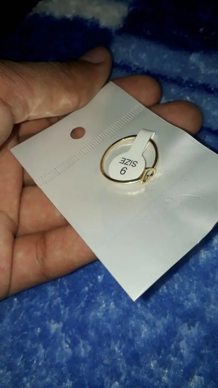 Колечко великолепное!!! Я очень довольна покупкой. Но честно говоря, я подобрала не тот размер (вообще не знаю какой у меня размер пальца) и кольцо просто с пальца упало, потерялось...Поэтому, к сожалению, фото не могу добавить. Если боитесь, что будет выглядеть очень дешево, не бойтесь. Выглядит очень миленько, носила его 24/7, пока не потеряла... Если не найду, наверно, закажу еще это колечко ♡´・ᴗ・`♡