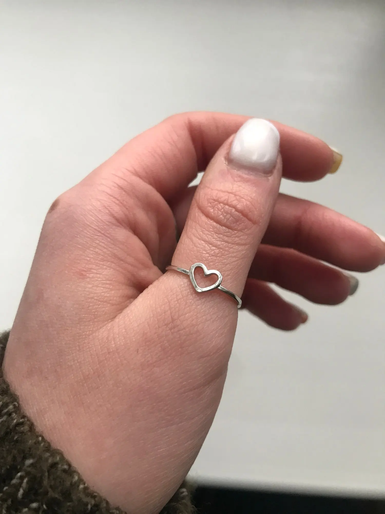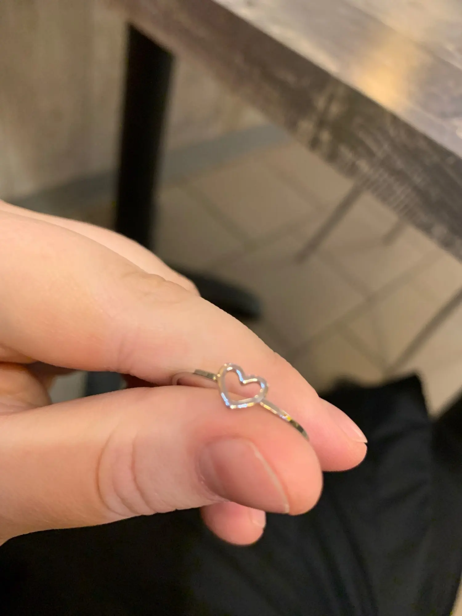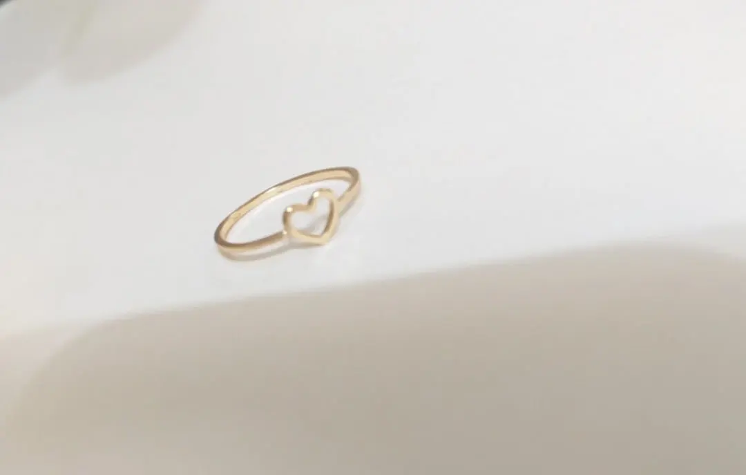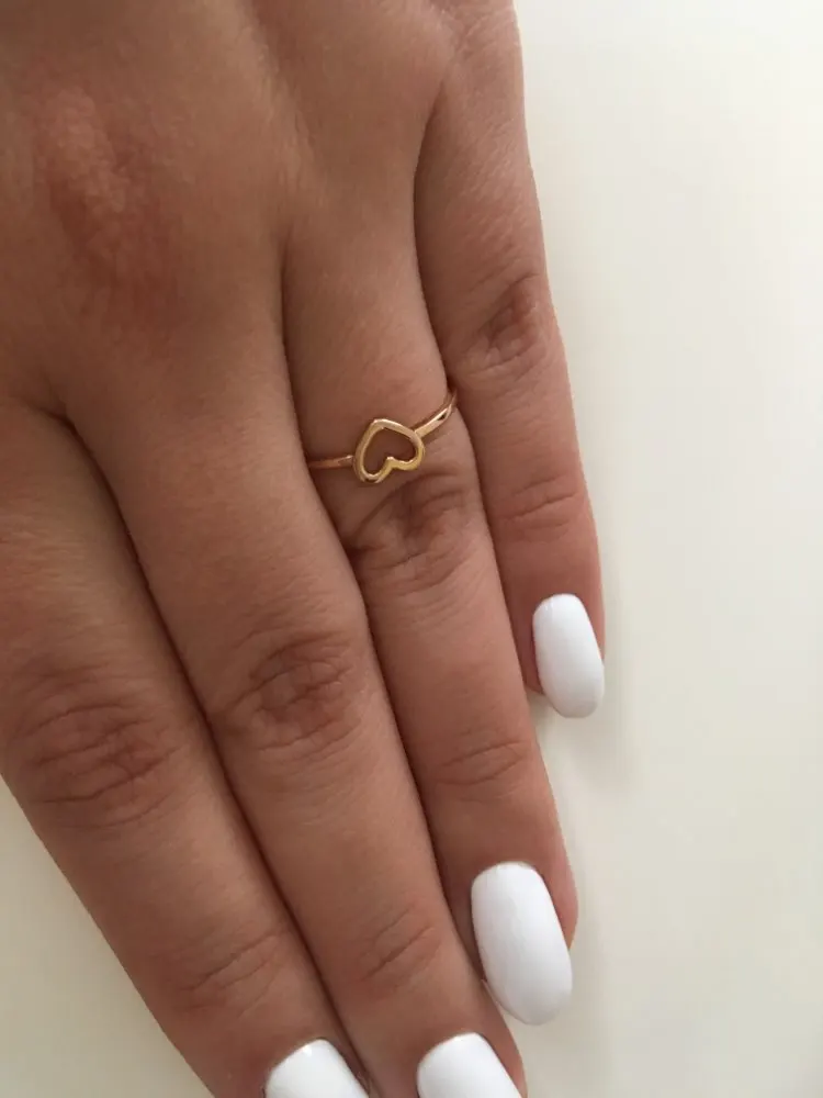 Тонюсенькое, на фото кажется потолще. Сердечко очень маленькое, изящное. Размер идеально подошел. Я довольна заказом. Кольцо пришло в Москву за три недели!