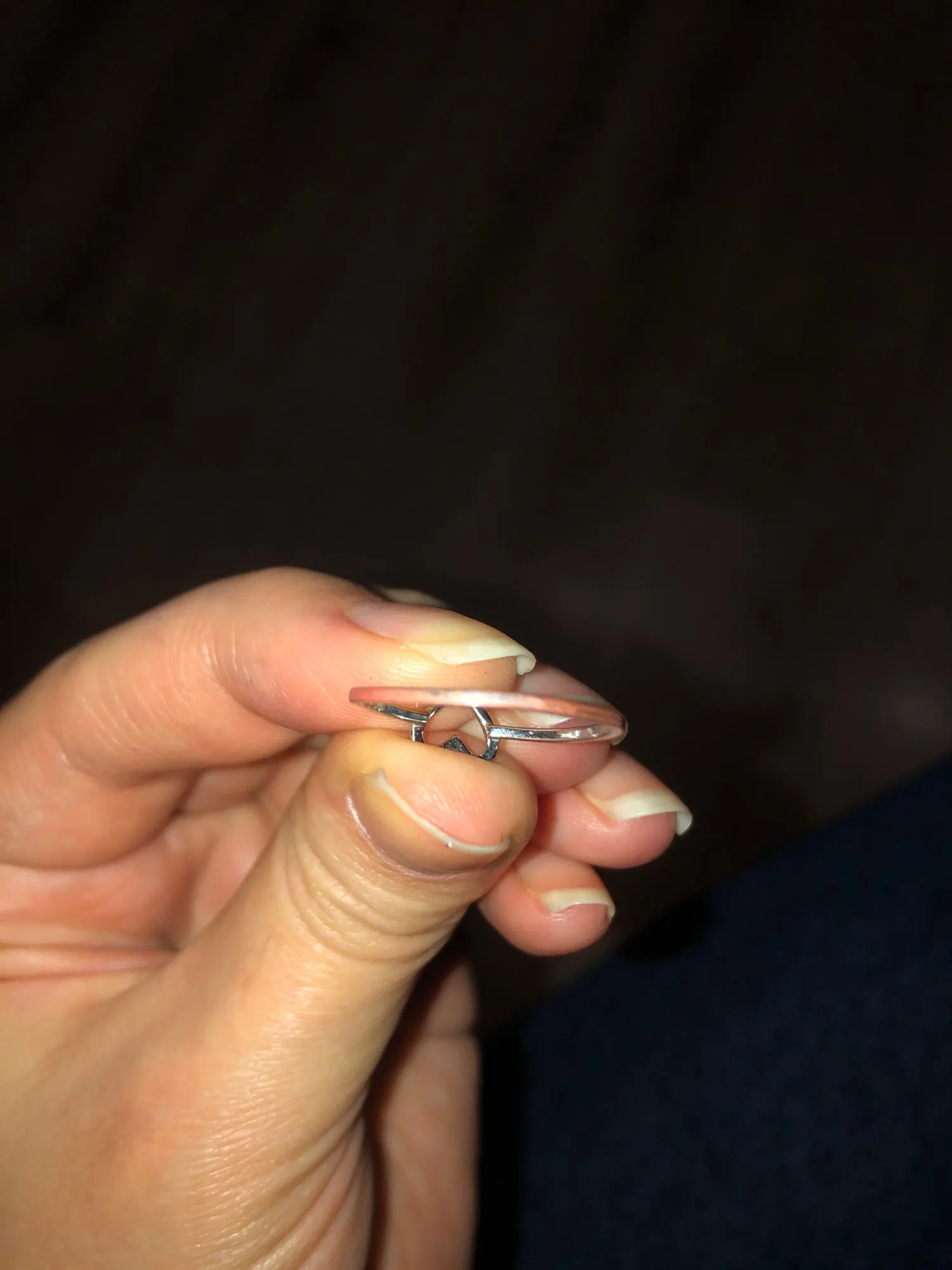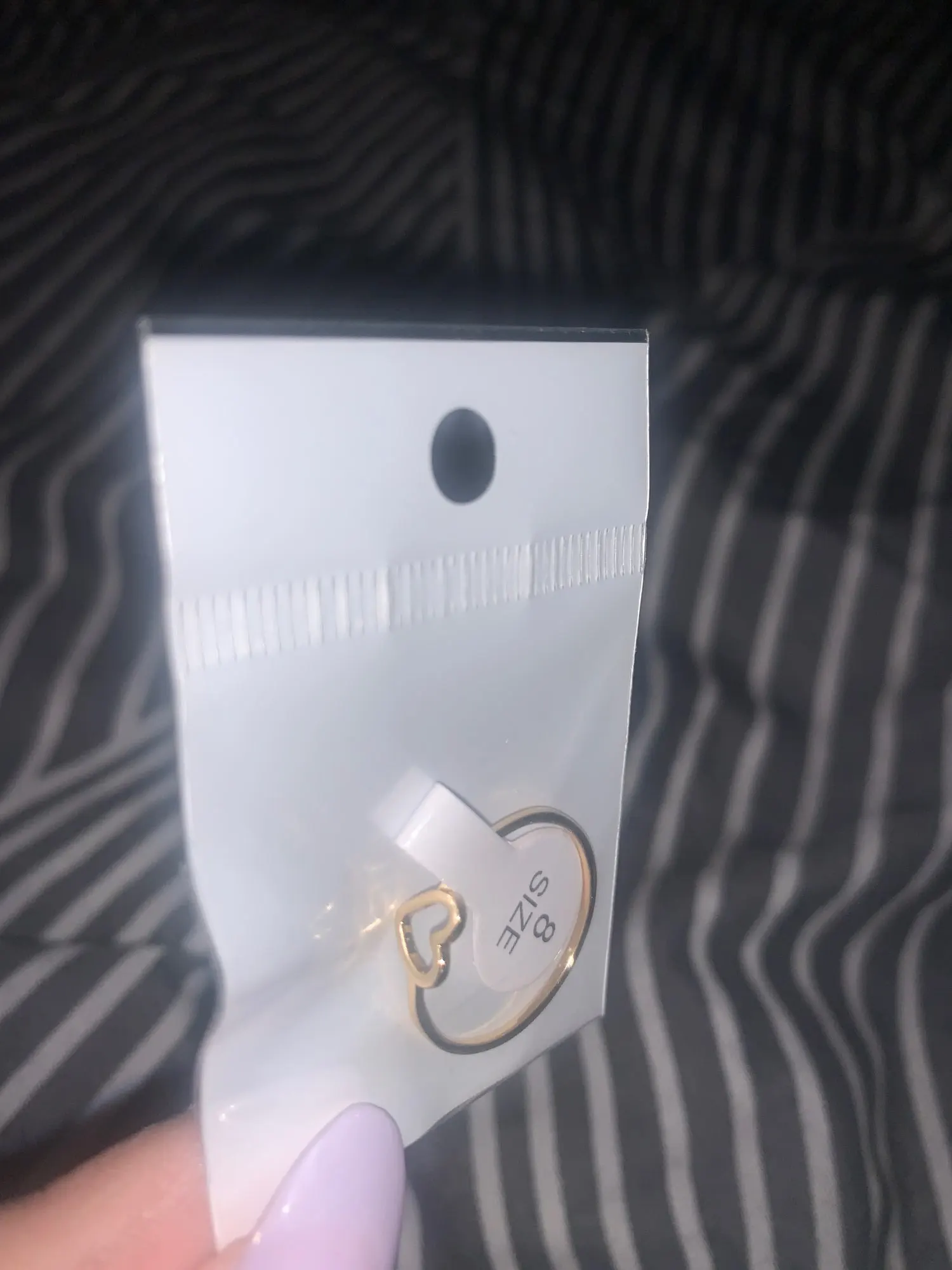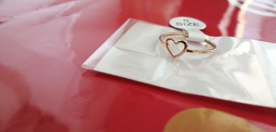 Пришло довольно быстро. Милое красивое кольцо, довольно твёрдое и чтобы погнуть надо постараться. Единственное это то что на русский 18 размер нужно брать 9, взяла 10 на безымянный палец, потеряла нося на большом.