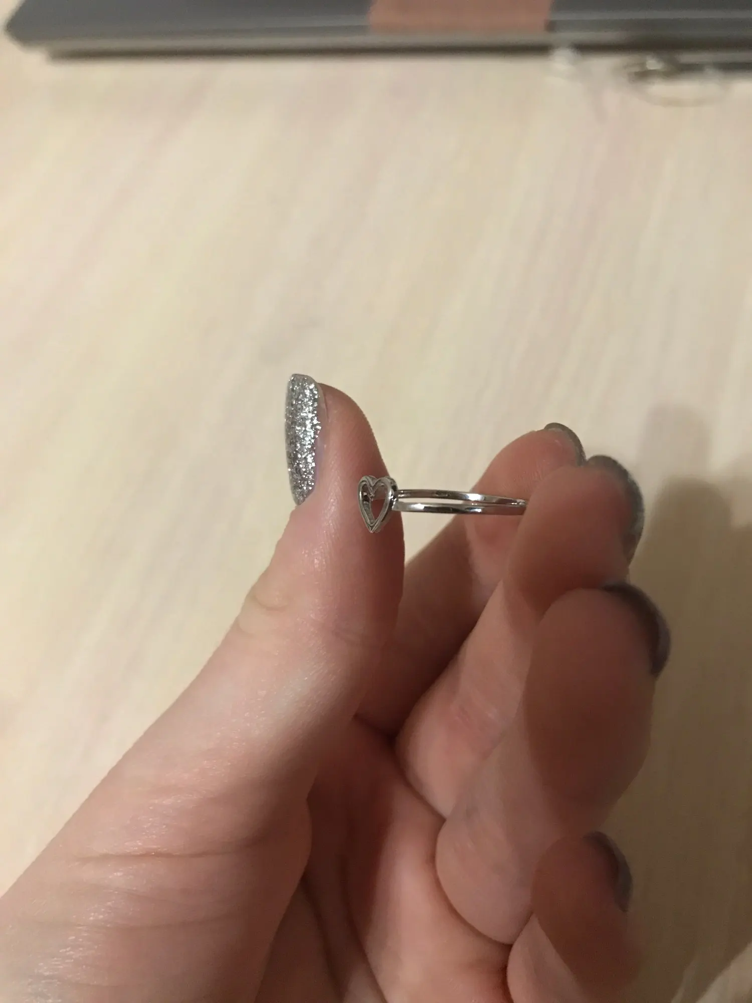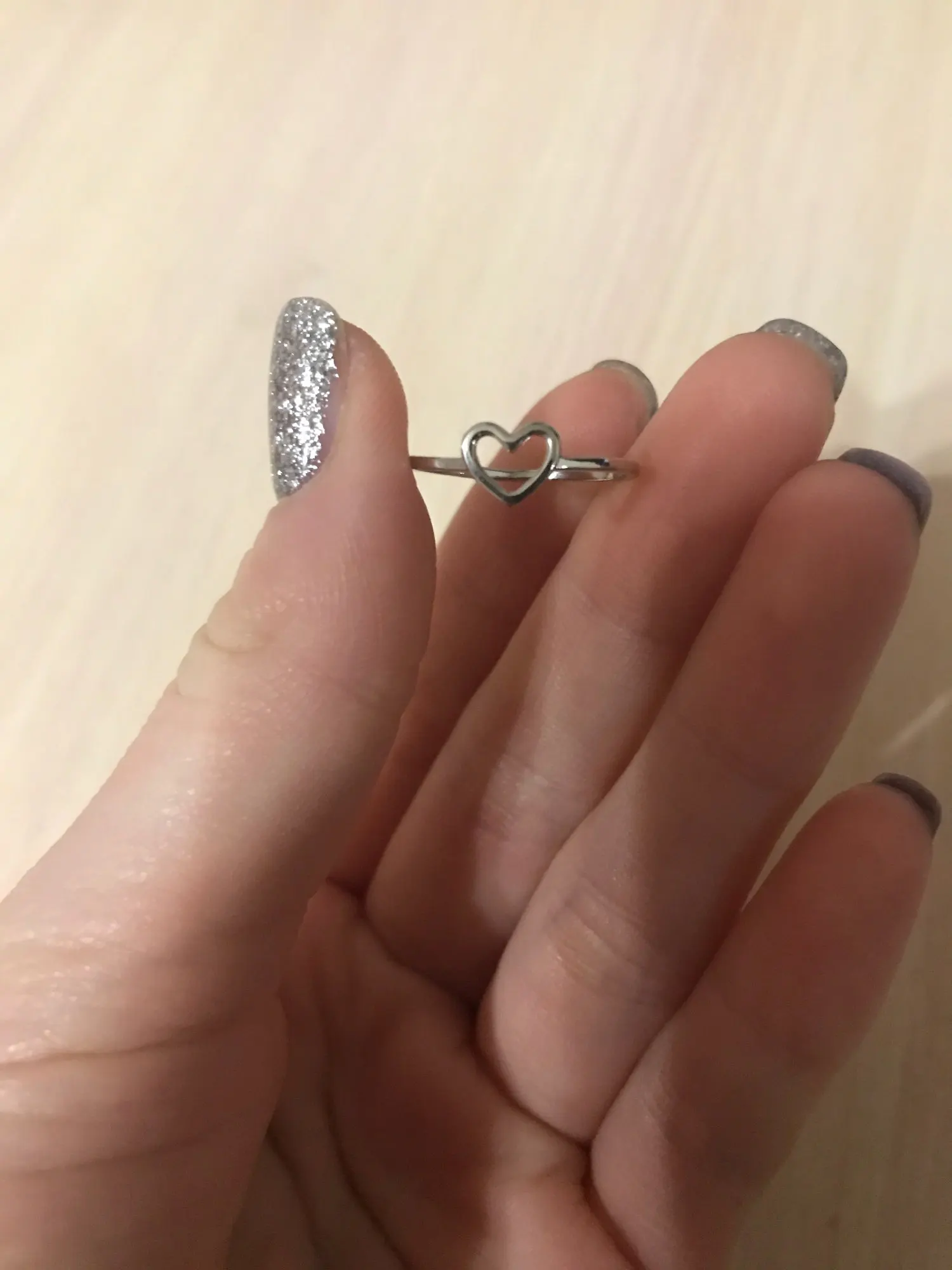 Кольцо пришло за полтора месяца, все по размеру, единственное что смущает это на самом сердечек есть неровности.