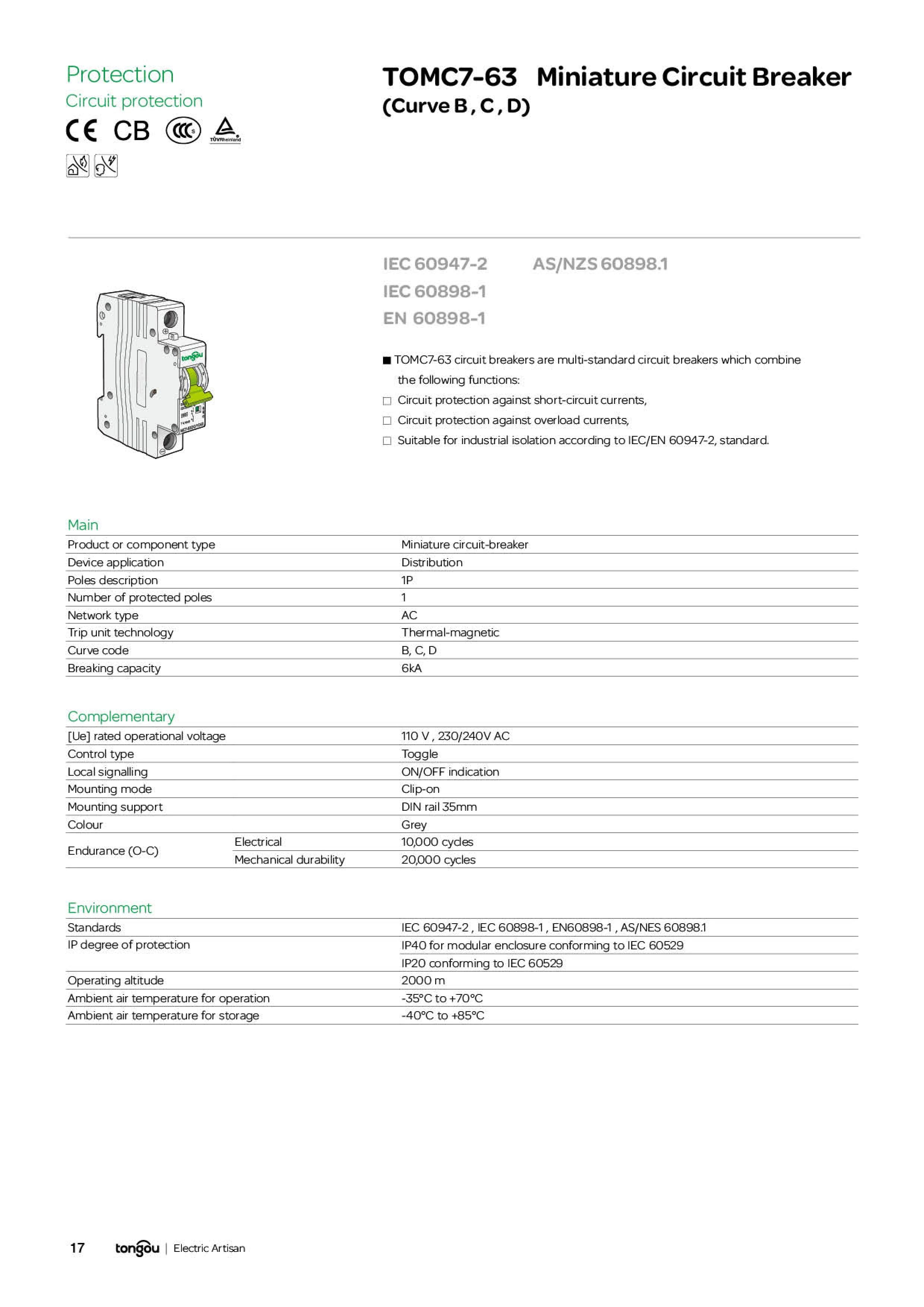 Автоматический выключатель 1P 2P 1A 6A 10A 16A 20A 25A 32A 40A 50A 63A, миниатюрный, 6KA 110 В220 В400 В, TOMC7-63 Гц, MCB