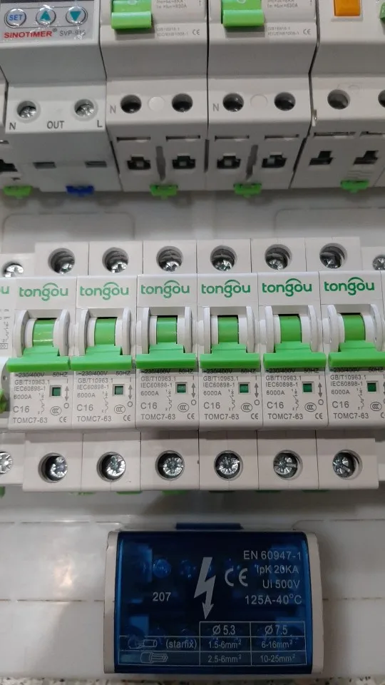 Хороший MCB с четко обозначенными базовыми параметрами, отмеченными спереди.