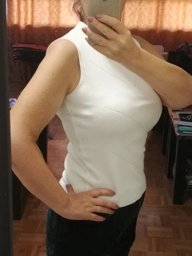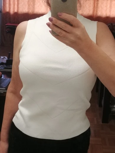 Отличная трикотажная безрукавка. Плотный трикотаж, хорошо тянется, очень приятная к телу. Отличное качество.