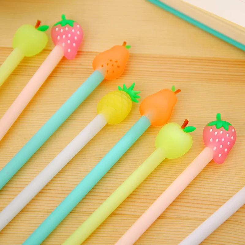 4 шт. фруктовая гелевая ручка 0,5 мм черные цветные ручки подарок для письма ананас клубника яблоко Канцтовары для офиса и школы FB137