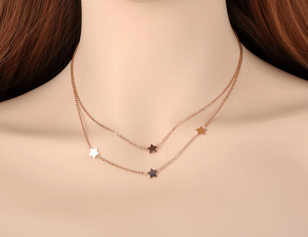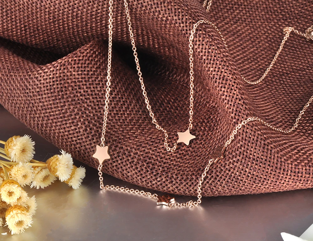 Цепочка Lokaer из нержавеющей стали цвета розового золота, ювелирное изделие с 2 звездами, колье, лучший подарок N18280
