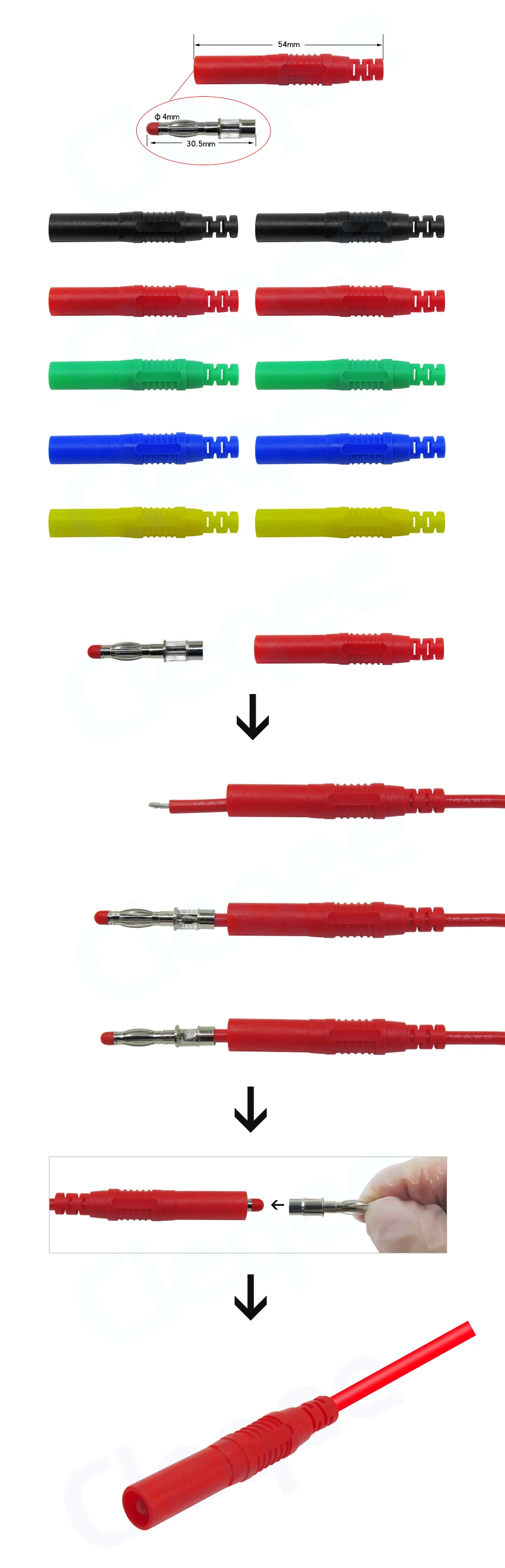 Cleqee P3013 10 шт. высококачественные безопасные 4 мм заглушенные банановые штекеры для припоя в линии DIY сборка испытательные выводы разъемы