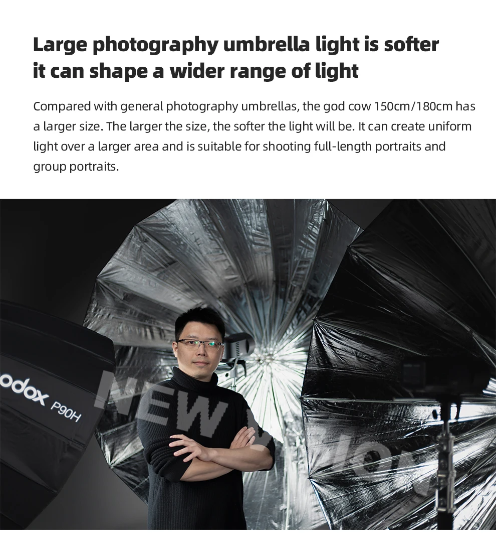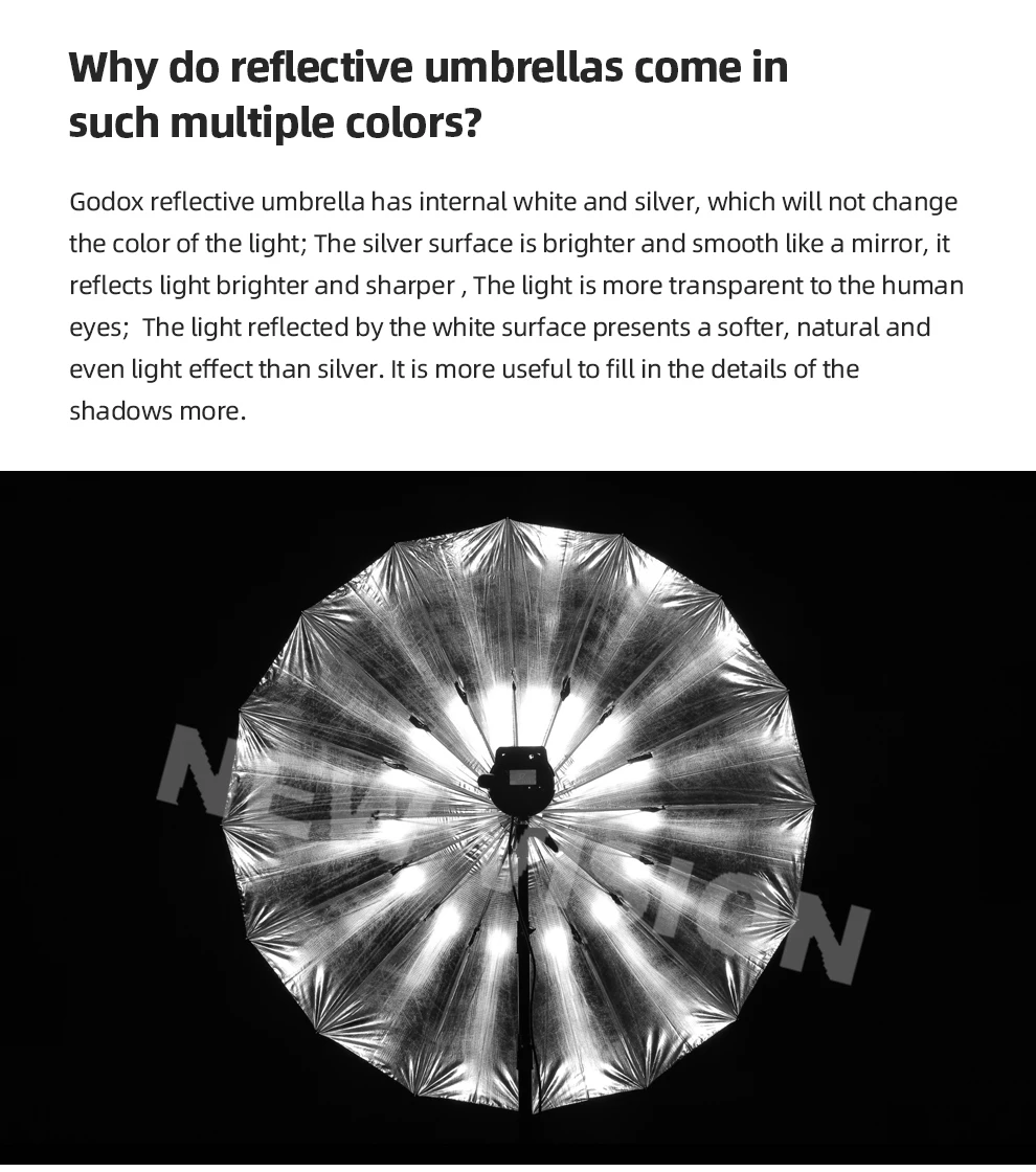 Зонт отражающий Godox, 60 дюймов, 150 см, черный, белый или серебристый