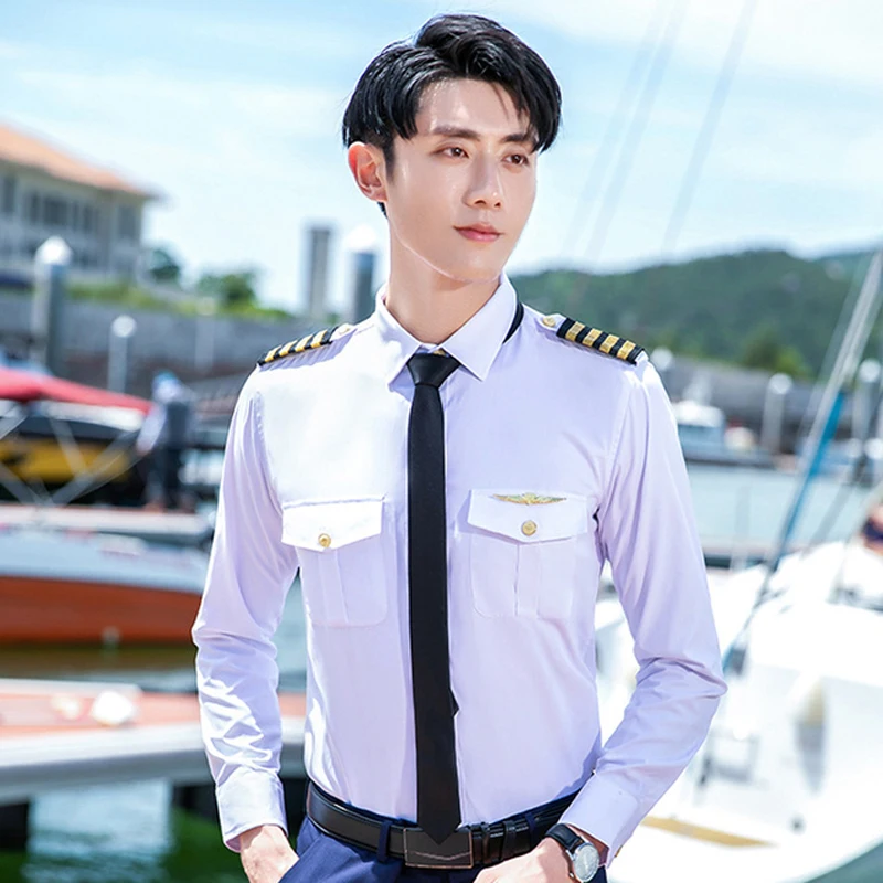 Рубашка мужская приталенная с длинным рукавом, повседневная офисная Спецодежда, пилот авиакомпании, белая, осень 2022
