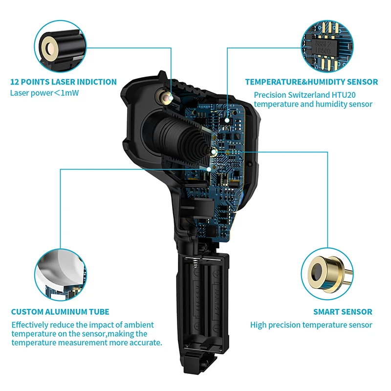 Датчик температуры и влажности (прецизионный Швейцарский датчик влажности и температуры HTU20)12 точек Лазерная Индикация (мощность лазера <1 мВт)Изготовленная на заказ алюминиевая трубка (эффективно уменьшает воздействие температуры окружающей среды на датчик, делая измерение температуры более точным.)Умный датчик (высокоточный датчик температуры)