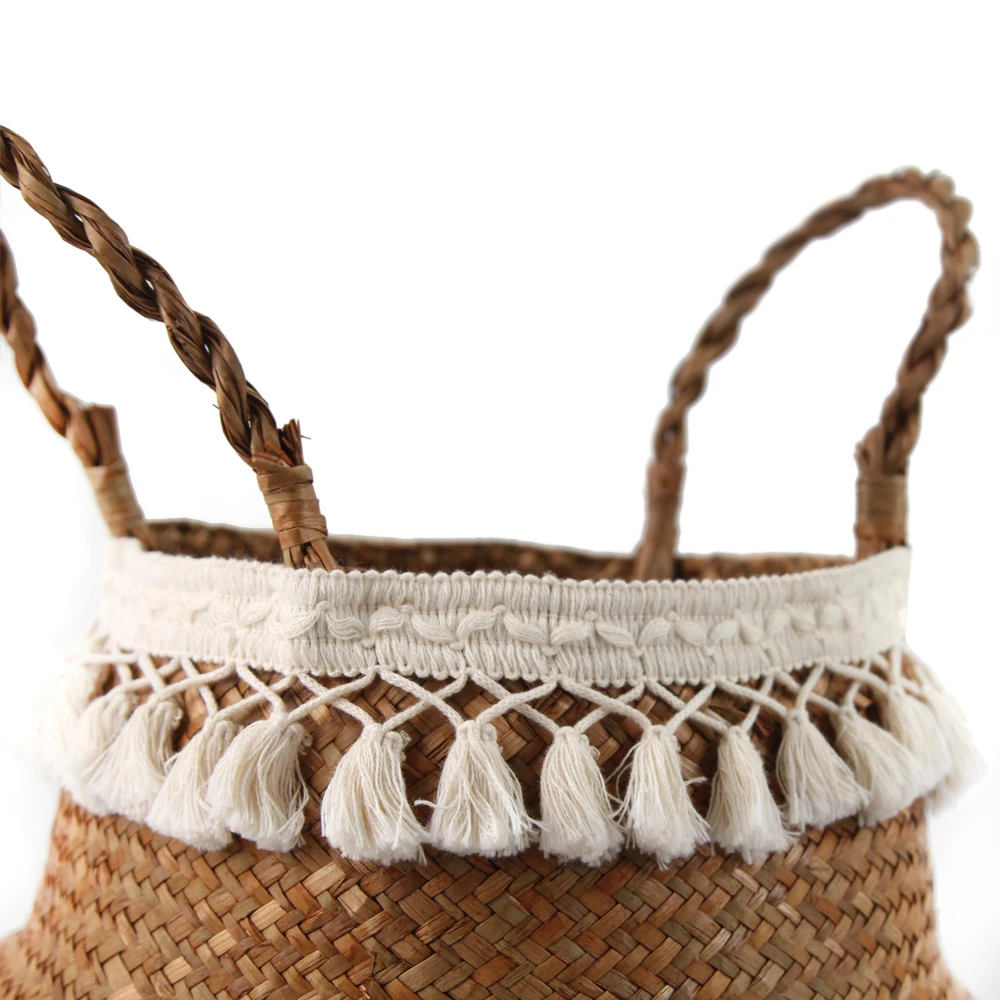 32x28 см плетеная корзина с бахромой, макраме, складная декоративна...