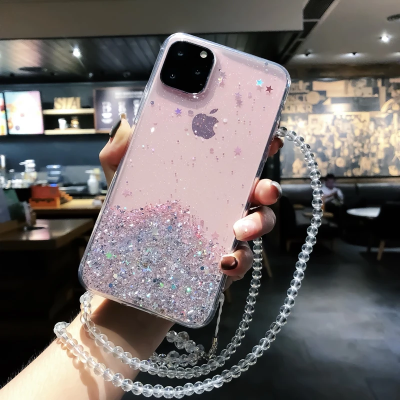 Gimfun Блестящий розовый Кристальный чехол для телефона IPhone 11 11 Pro Max X Xr Xsmax прозрачный ремешок мягкий ТПУ чехол
