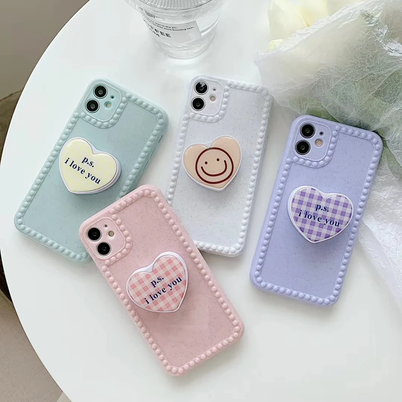 Корейский карамельный однотонный чехол для телефона с сердечками для IPhone 7 8 8plus X XR Xsmax 11pro милый держатель с улыбкой Ударопрочный силиконовый чехол
