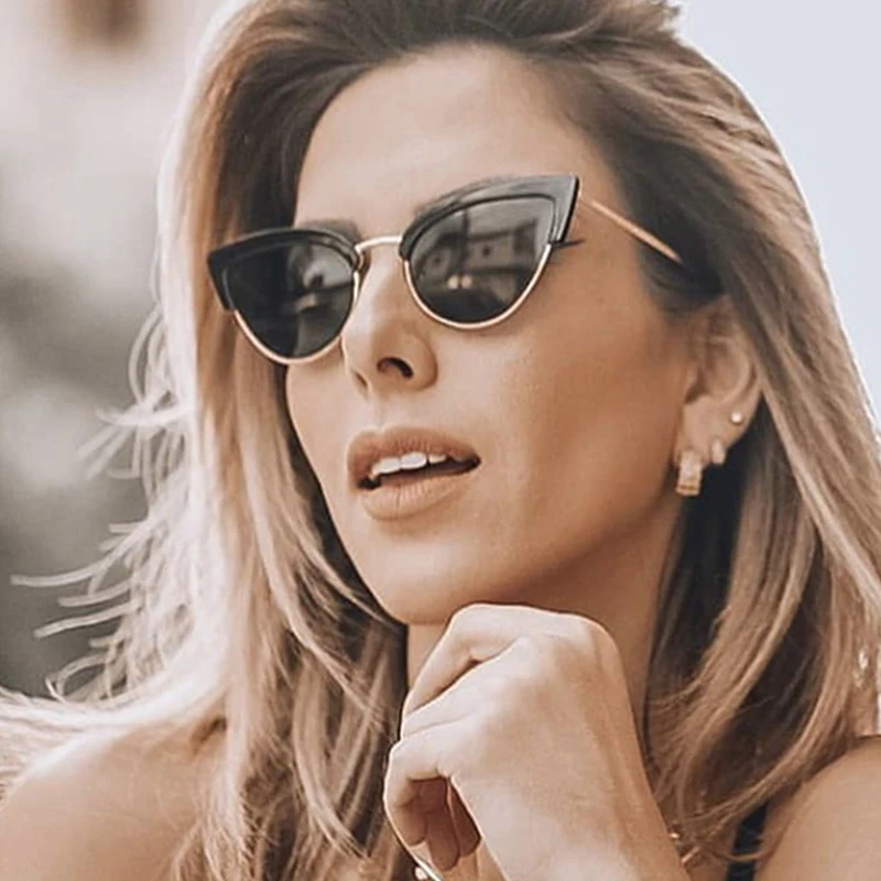 Солнцезащитные очки женские, кошачий глаз, Ретро дизайн, элегантные, в полуоправе, винтажные, большие, 2018