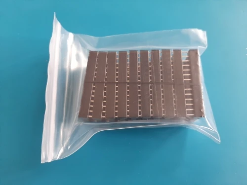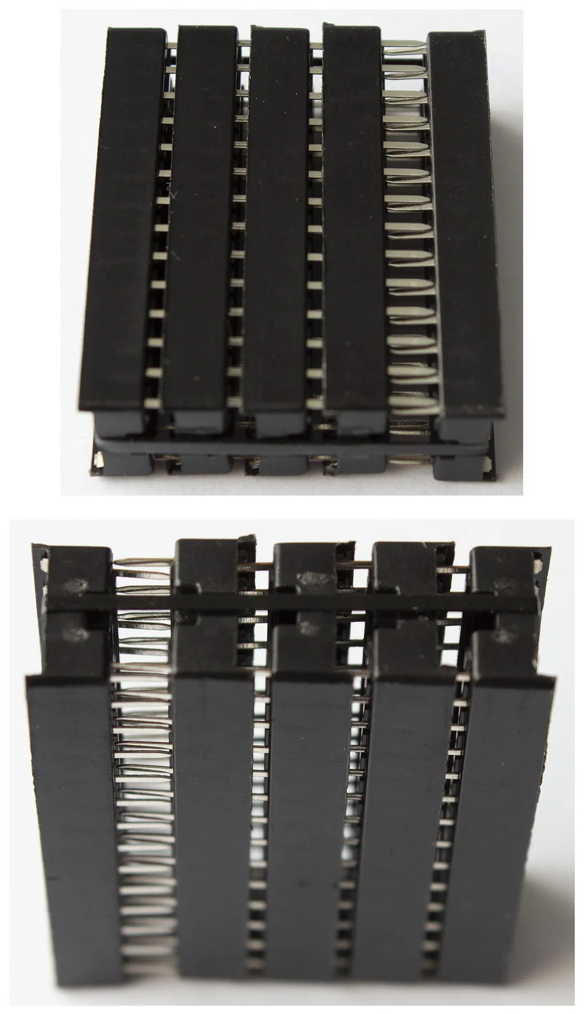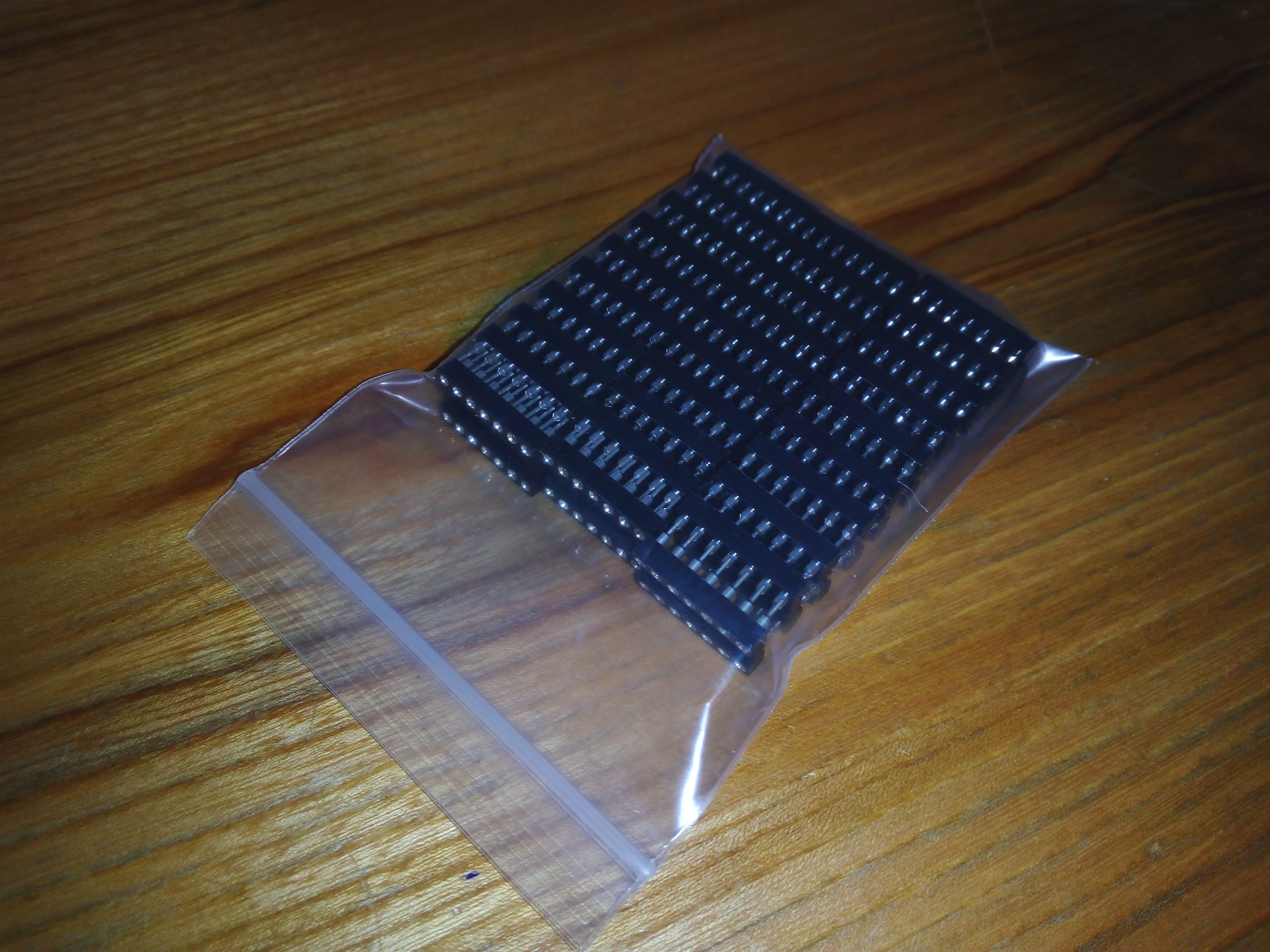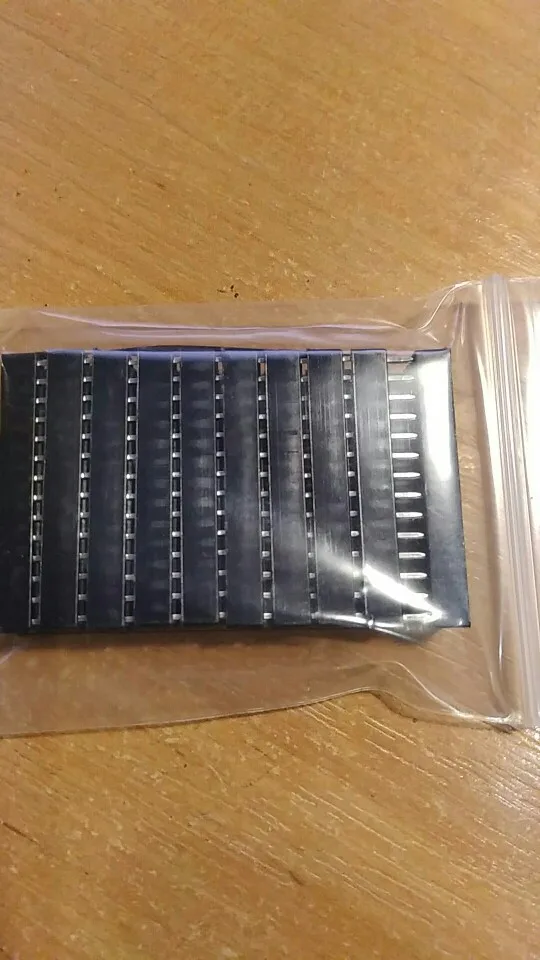 DIP-28 узкая. Панели поставляются в пластиковом пакетике. Набор панелей собран таким образом, что все выводы обращены внутрь для избежания их повреждения во время транспортировки. Кроме того он закреплён резинкой от рассыпания. Весьма толково! Размеры панели: длина - 35,5 мм, ширина - 10 мм, высота - 4,5 мм (это самой панели, от верха панели до окончания выводов - 8 мм).