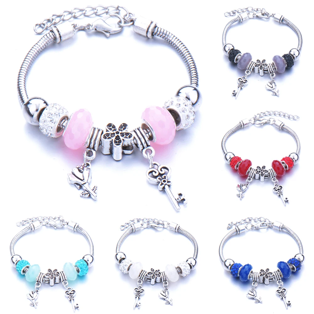 Романтическая любовь DIY браслет с подвесками Love Сердце ключ и за...