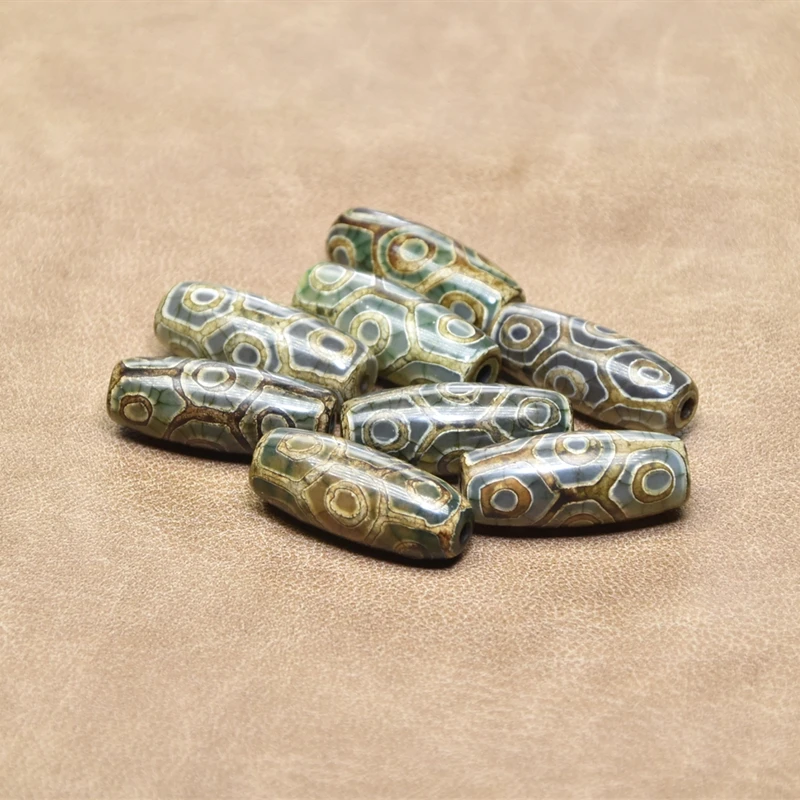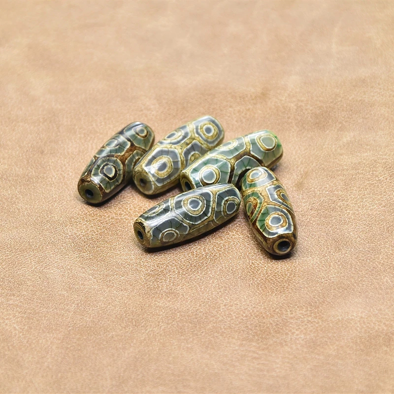 1 шт.лот Fengshui Агат DZI 12*30 мм зеленыйхаки черепаховый амулет 9 глаз DZI для мужчин и женщин ювелирные изделия DIY Бесплатная доставка