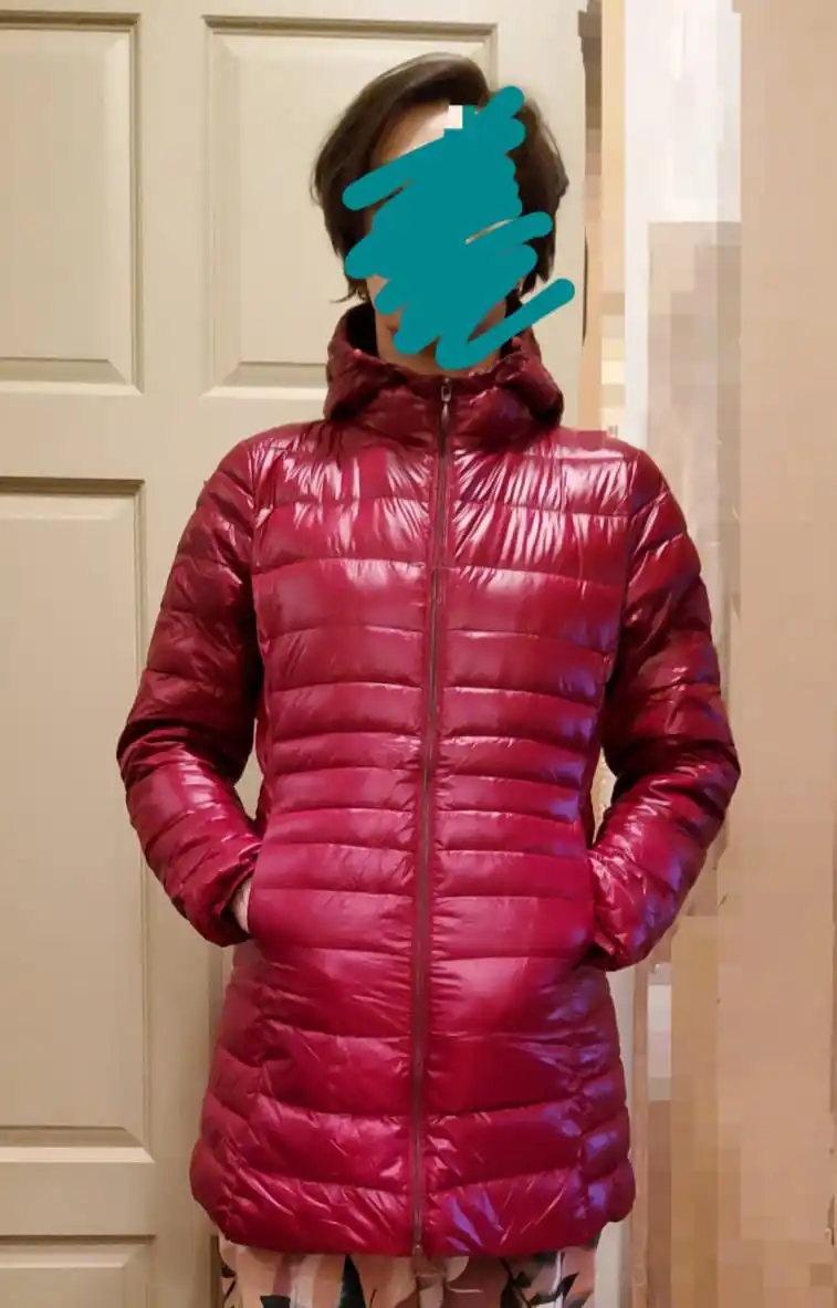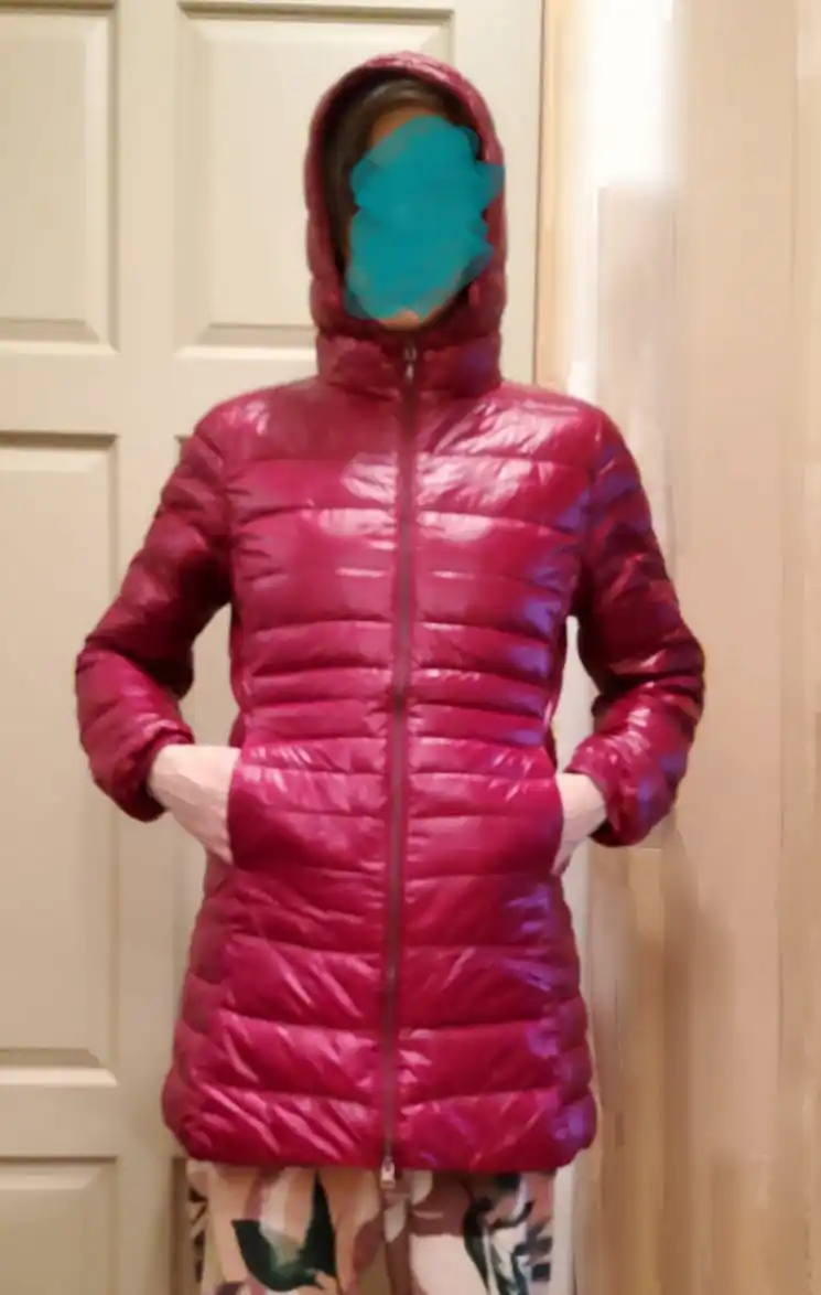 Куртка дуже тоненька, хіба що на початок осені, важить дуже мало, приблизно 100 грамів, подивимося як в ній тепло, дійсно має пух, але що буде з нею після прання. Колір гарний , блискучий, на мене S підійшла але в грудях впритик , ріст мій 164, розміри 90/64/89