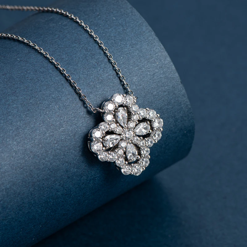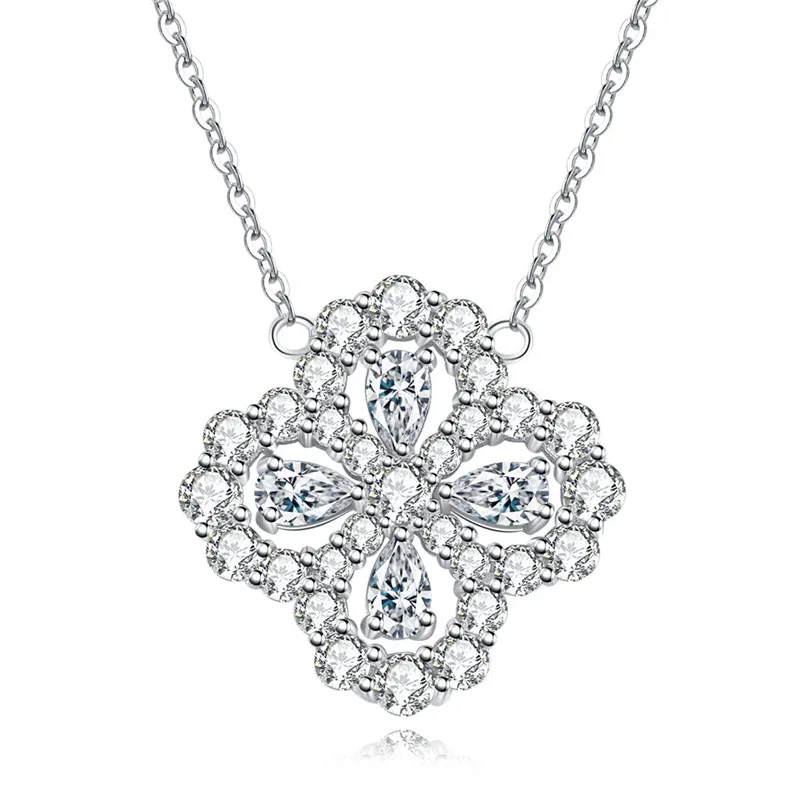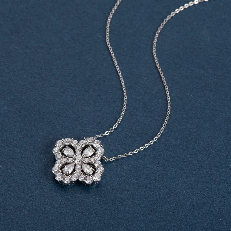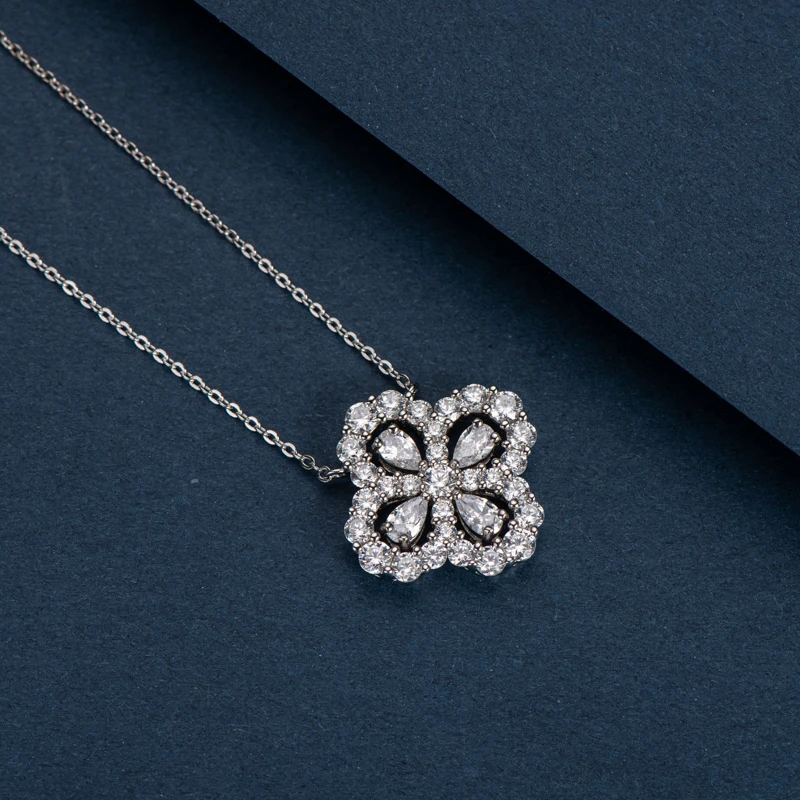 Ожерелье женское из серебра 925 пробы с фианитом в виде четырехлист...