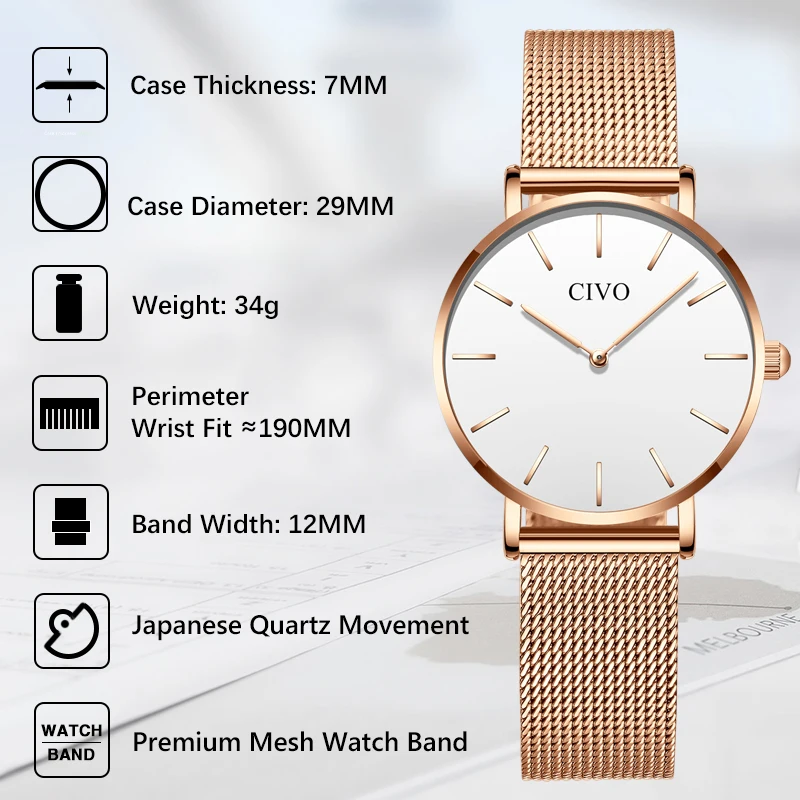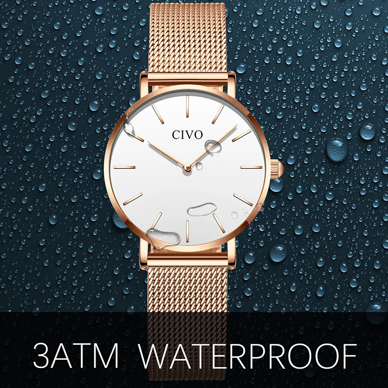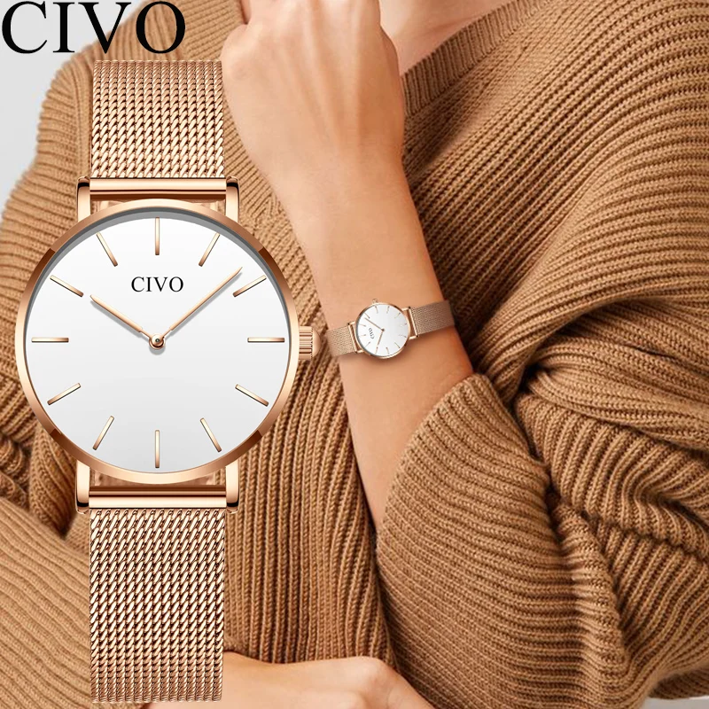 CIVO модные роскошные женские часы, женские часы, ультратонкие водонепроницаемые кварцевые часы со стальным сетчатым ремешком, женские часы, Relogio Feminino