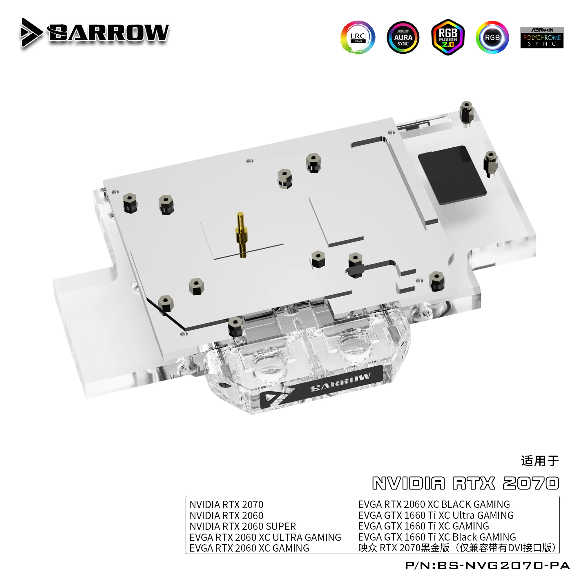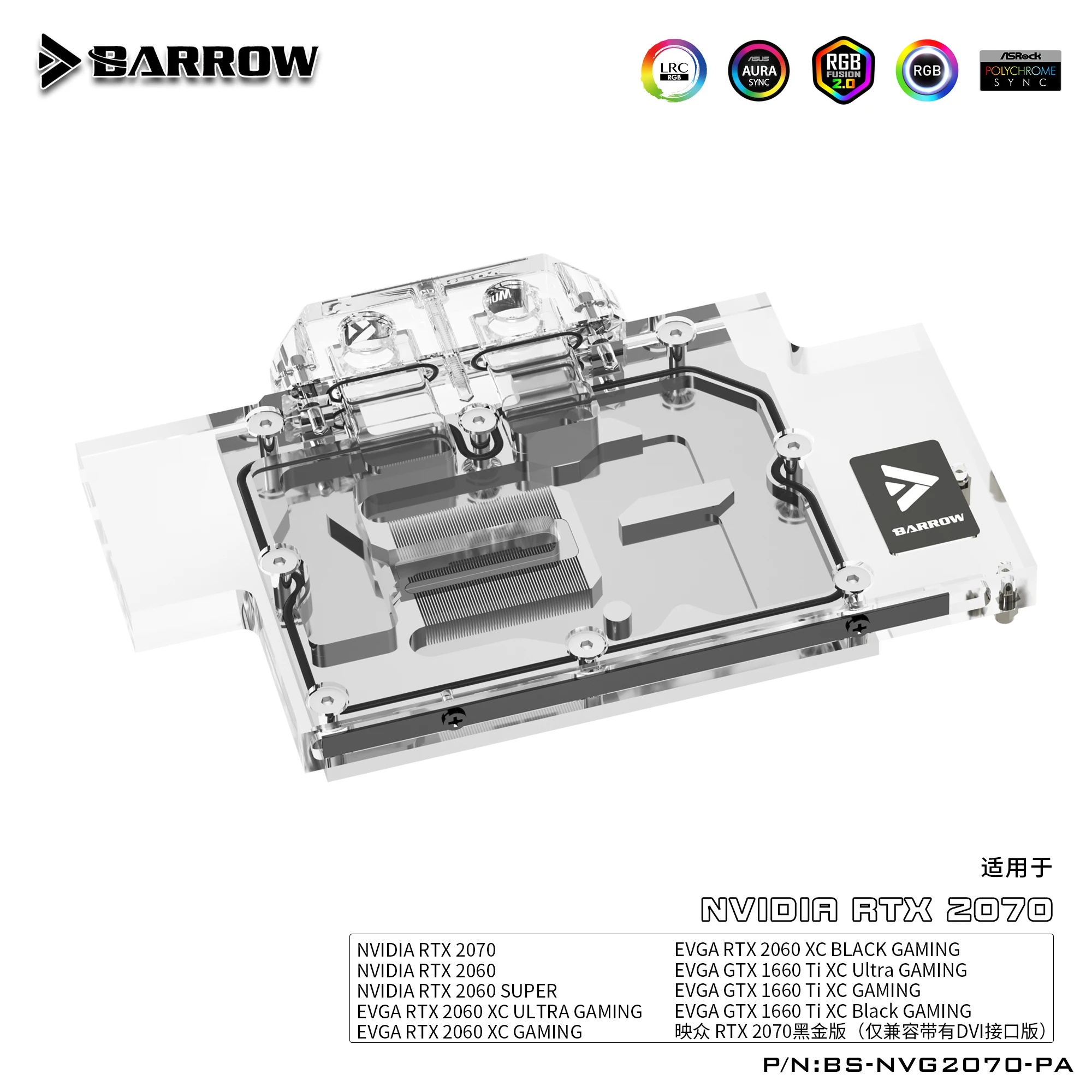 Блок питания BARROW для основателей NVIDIA RTX2070 EditionReference EditionEVGA 2060GTX1660Ti, полноразмерный блок GPU, 3pin