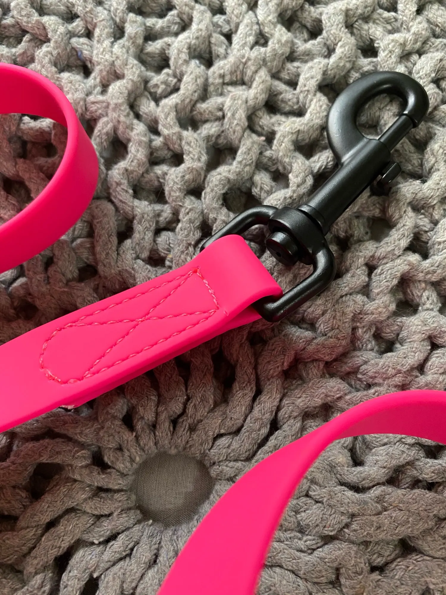 очень яркий поводок, заказывала с ошейником для французского бульдога. покупкой довольна
