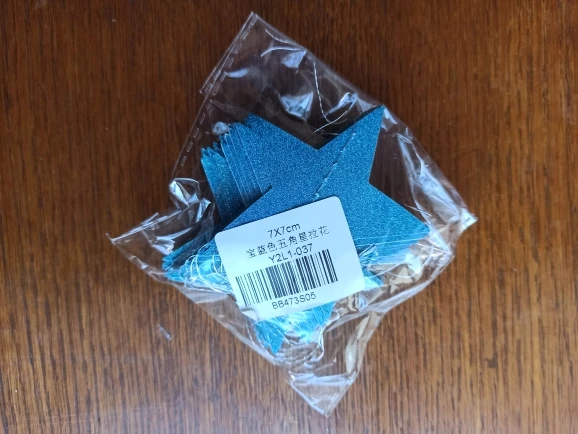 Доставили очень быстро, пока не распаковывала, но звёзды немного помяты на кончиках