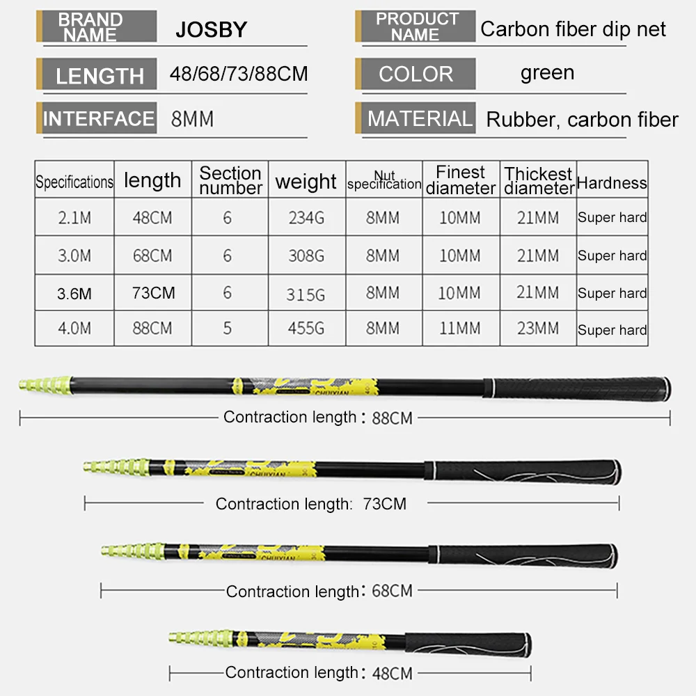 Рыболовная сеть JOSBY, складная, 2,1 м, 3 м, с длинной ручкой