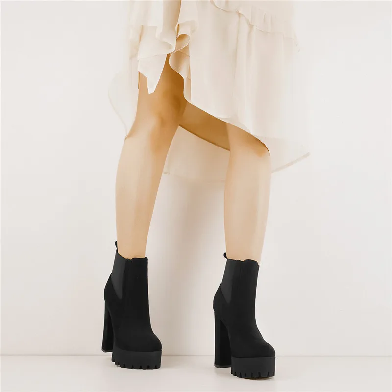 Onlymakerженские ботильоны на платформе с круглым носком; Женские ботинки черного цвета на толстом высоком каблуке размера плюс