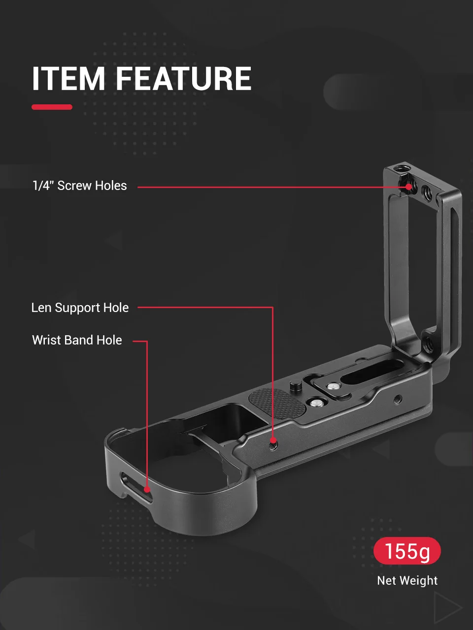 6. Имеет три резьбовых отверстия 1/4 "-20 на боковой пластине для крепления аксессуара.
