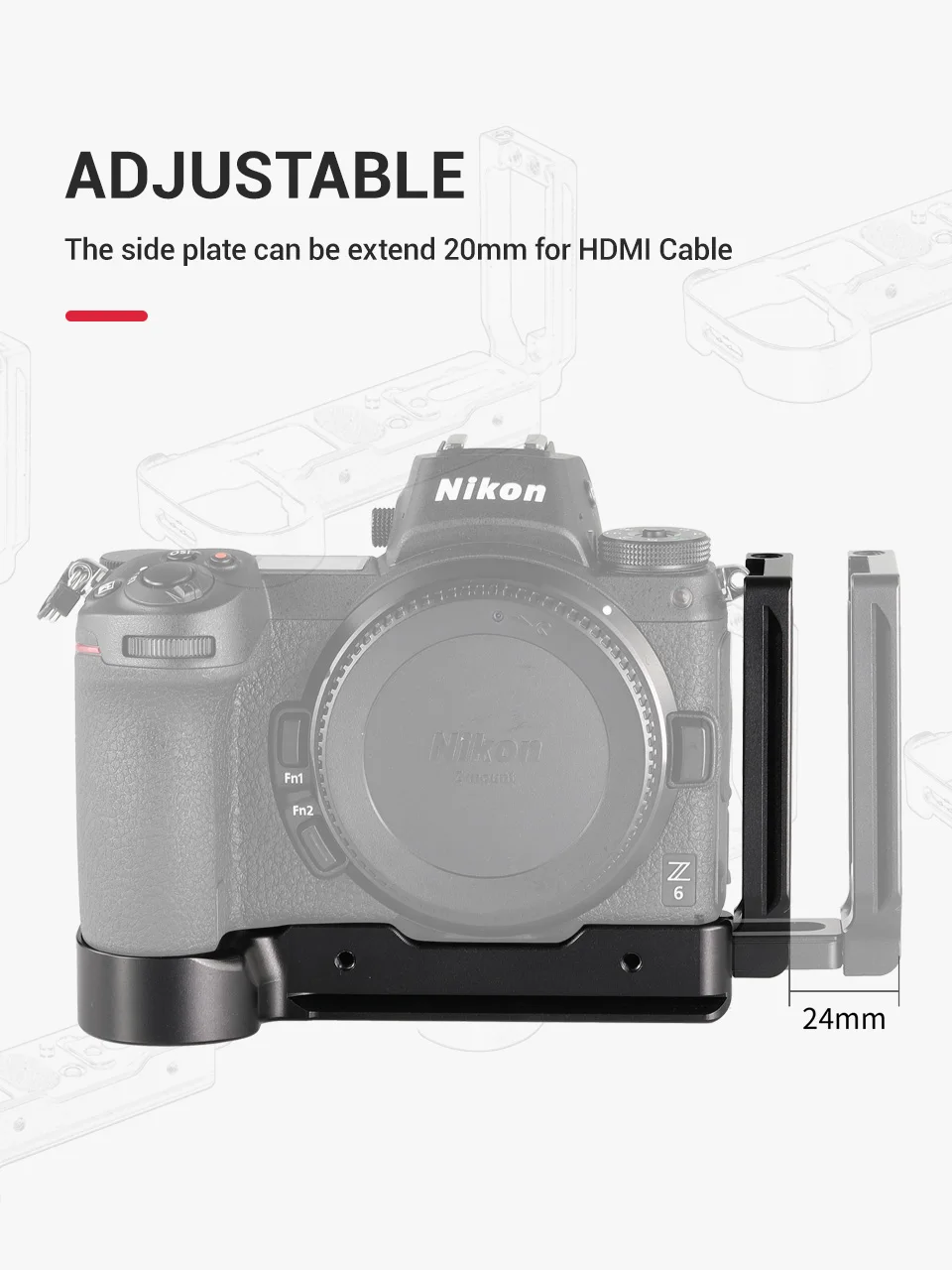 L-кронштейн SmallRig для Nikon Z6 и для камеры Nikon Z7 apl2258-это модульная конструкция с фланцами, защищающими от скручивания камеры. Нижняя пластина добавить 16,5 мм высота на основе оригинального рукоятки для розово-поддержка. Базовая пластина и боковая пластина совместимы с Arca-type, что позволяет камере крепиться в вертикальном или горизонтальном положении. Он оснащен линией центрирования датчика на каждой оси для выравнивания камеры на головке штатива и поддерживает полный доступ к батарее и портам камеры. Боковая пластина может быть расширена налево, если требуется больше места для подключения или кабеля. Прилагаемый шестигранный ключ в нижней части используется для затягивания и регулировки l-кронштейна. Кроме того, он совместим с ремешком пикового дизайна и включает петлю ручного ремня с правой стороны. Кроме того, крепежные отверстия 1/4 "-20 расположены сбоку и снизу для крепления аксессуаров, таких как крепление для холодной обуви 1593. Передняя часть опорной пластины поставляется с двумя винтами M4 для крепления адаптера FTZ 2244 для защиты порта объектива.