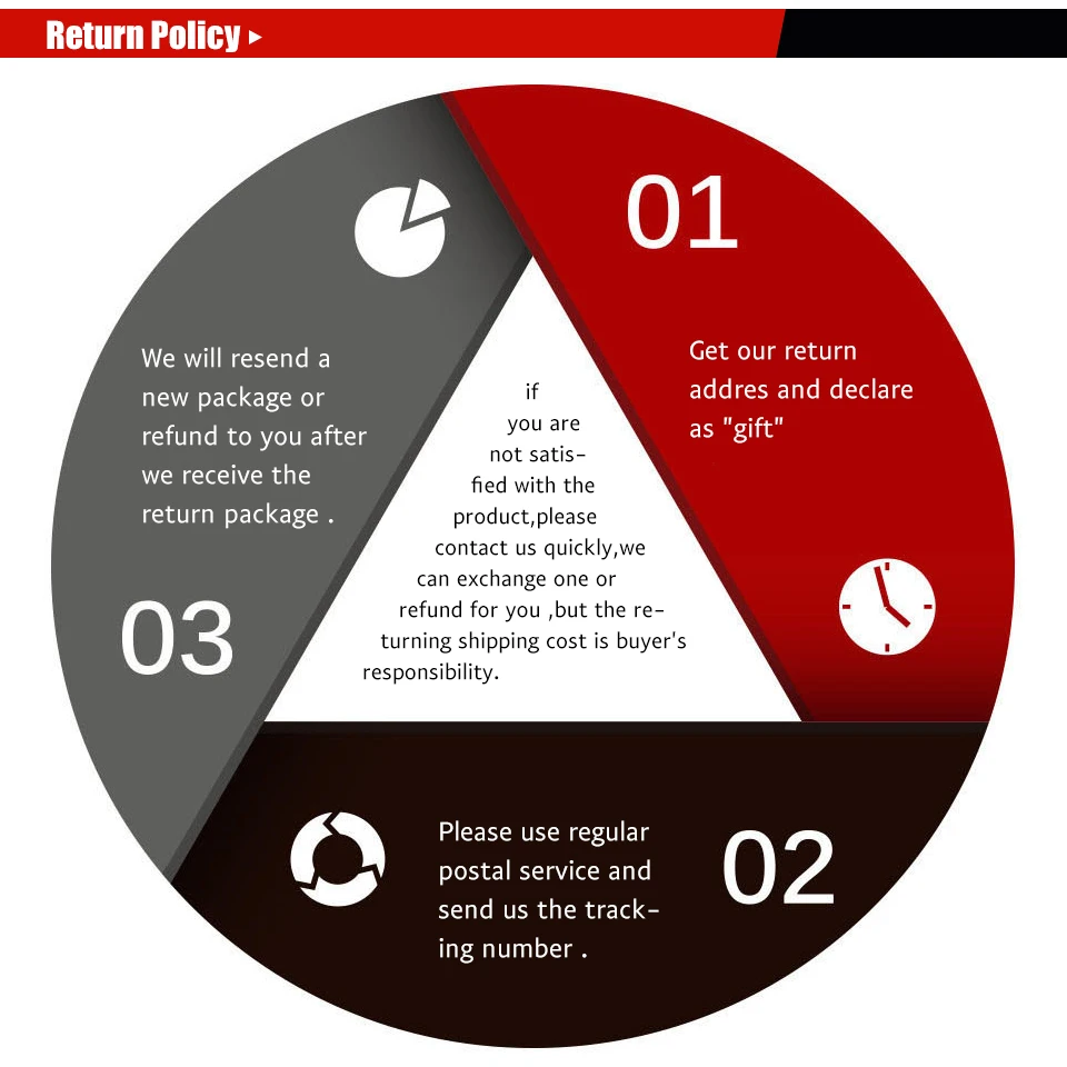 3. Мы повторно отправим вам новую посылка или вернем Вам деньги после того, как мы получим возвращенную посылка.