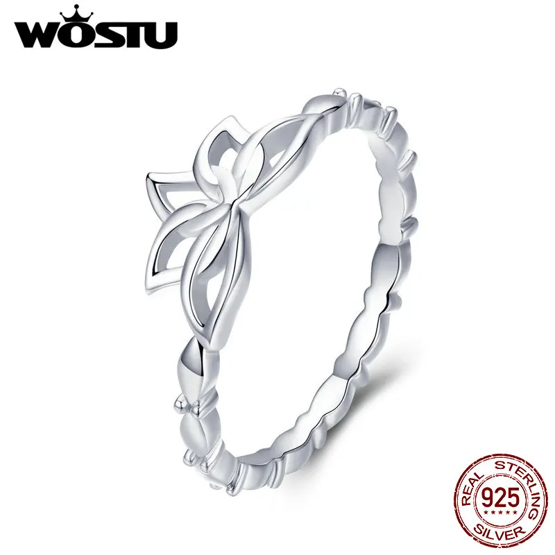 WOSTU Новая коллекция 925 Серебряное кольцо с цветком лотоса для женщин элегантные свадебные кольцо оригинальное фирменное ювелирное изделие, подарок CTR018