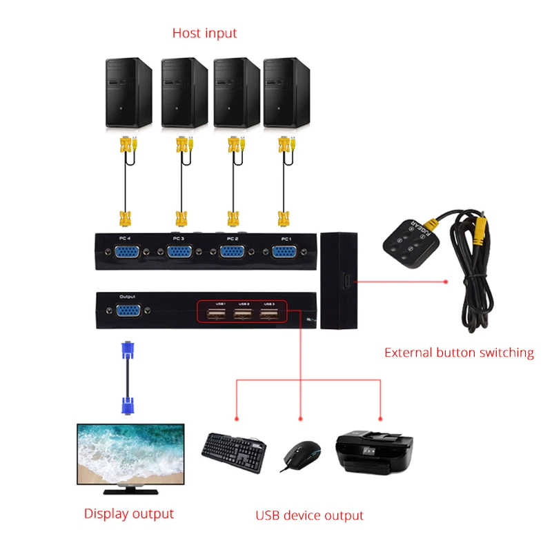 Usb kvm переключатель коробка с настольным контроллером USB переключатель несколько компьютеров поделиться USB устройства монитора отправить разъем провода
