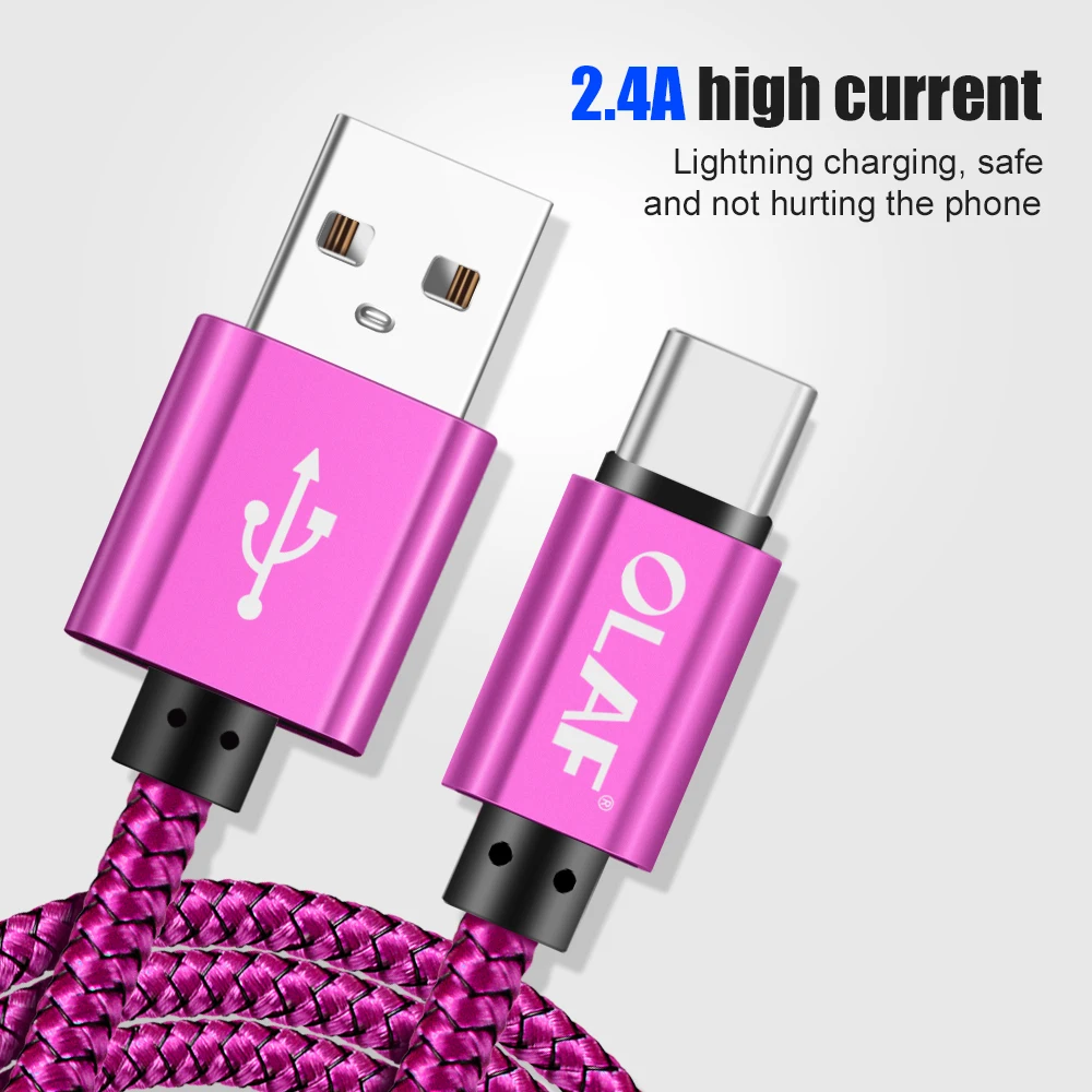 Кабель USB Type-C Olaf 2,4 А для Huawei Mate 20 Pro, шнур для быстрой зарядки и передачи данных, шнур для Samsung S9 Note 9 One plus 6 5t