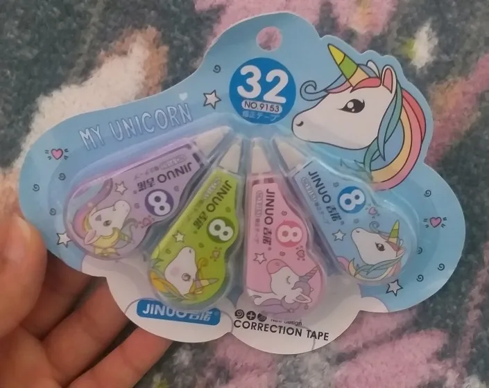 Лента корректирующая белая в виде единорога 4 шт.упак., Канцтовары студенческий приз, для школы и офиса