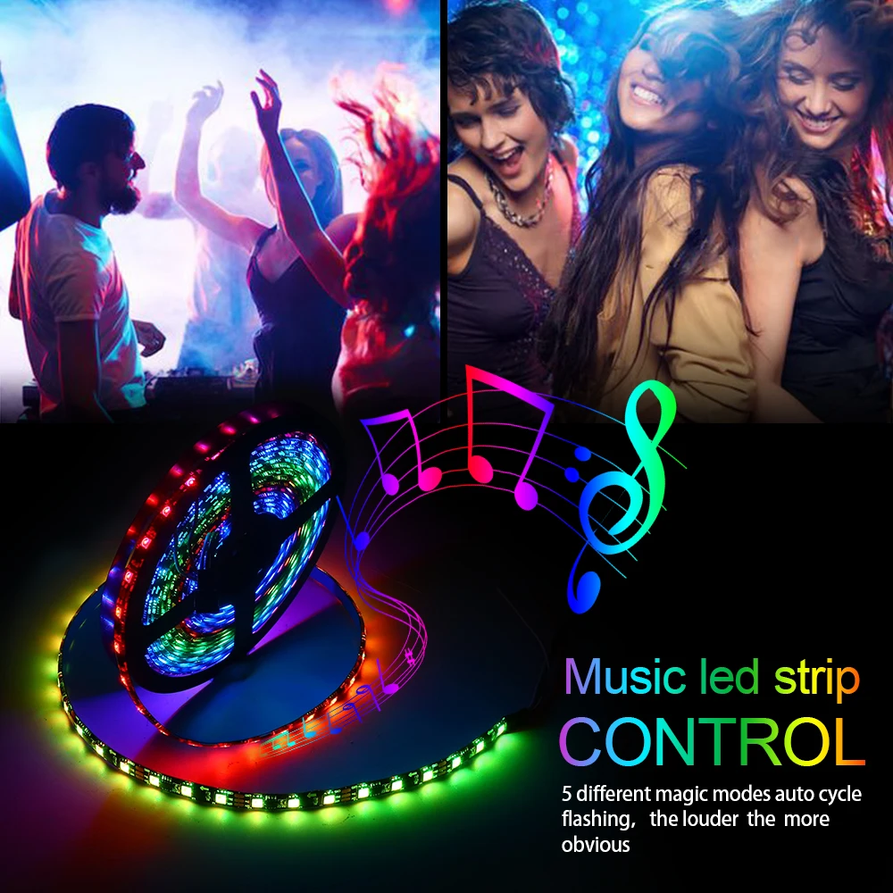 Светодиодная лента 12 В постоянного тока, светильник с музыкальным контроллером синхронизации, цифровая светодиодная лента ws2811 5050 RGB, Адресуемая Светодиодная лента радужного цвета, 1-5 м