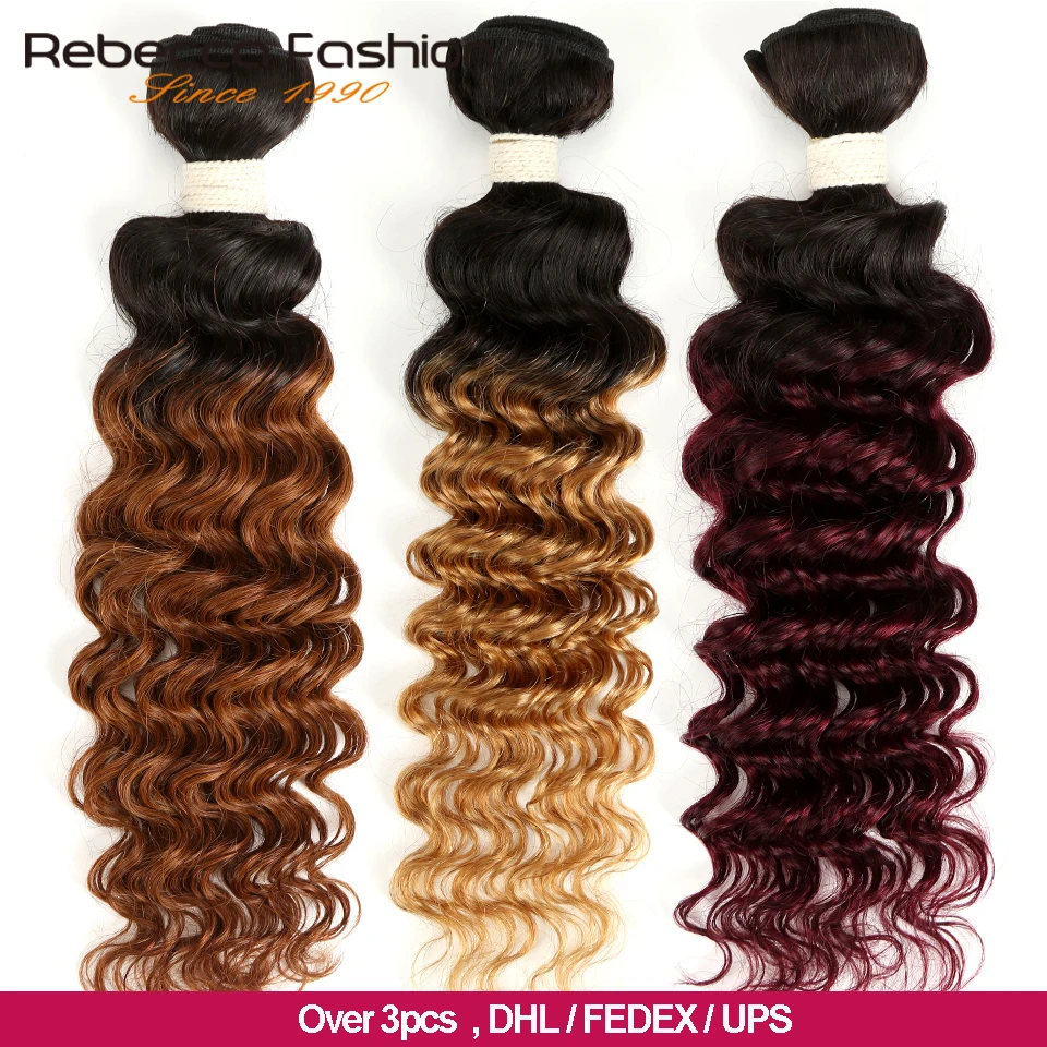 Пупряди индийских натуральных волос Ребекка Омбре, глубокая волна, 34 шт., двухцветные, T1B27 # T1B30 # T1B99J # 100%