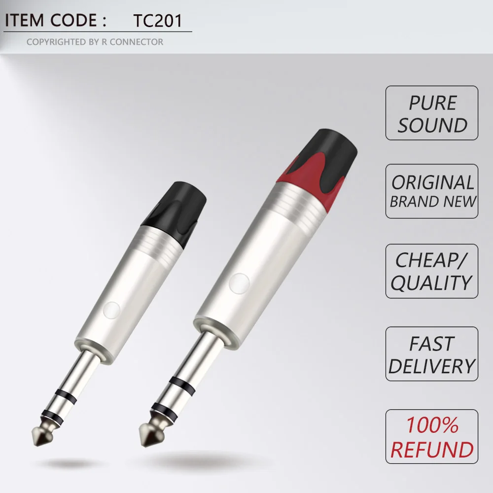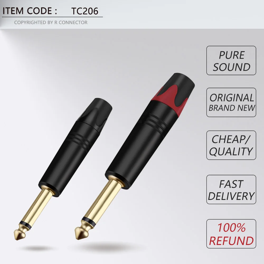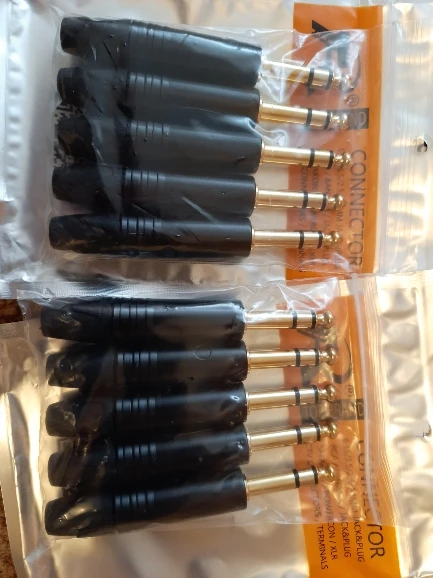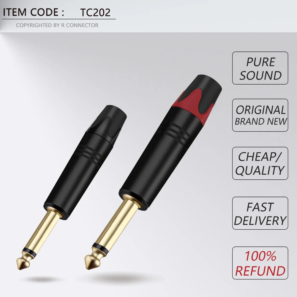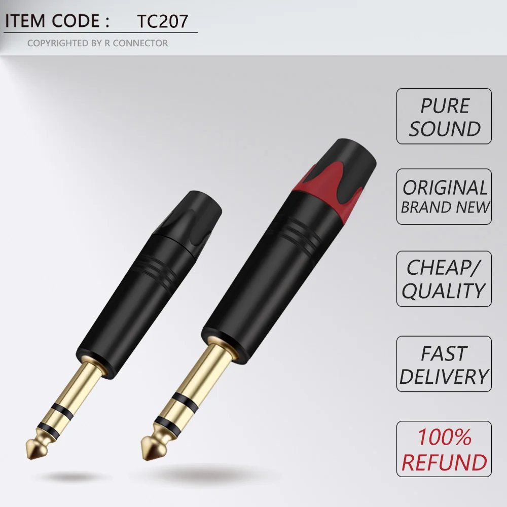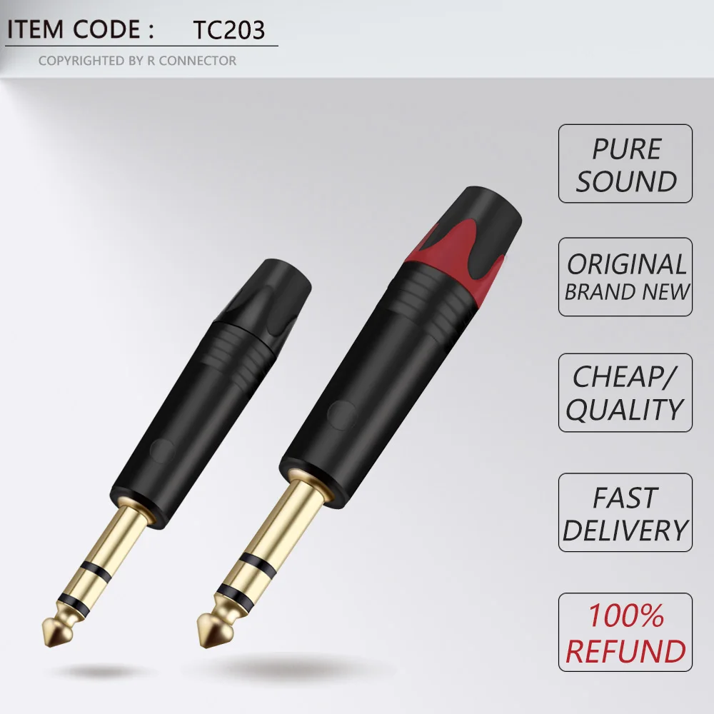 10 шт., 3-полюсный стерео-разъем 6,35 мм, 14 дюйма, 6,3 мм, разъем для паяльного провода, позолоченный латунный разъем для микрофона