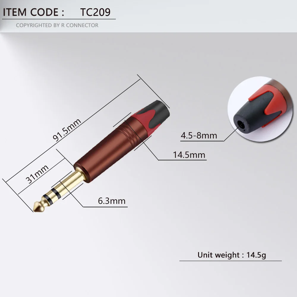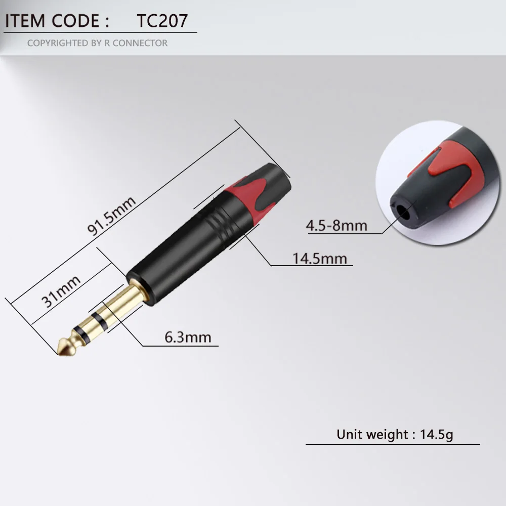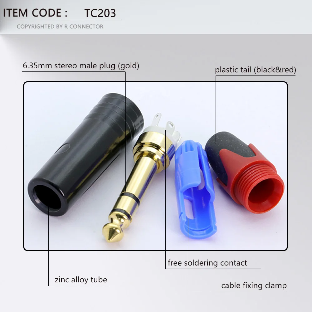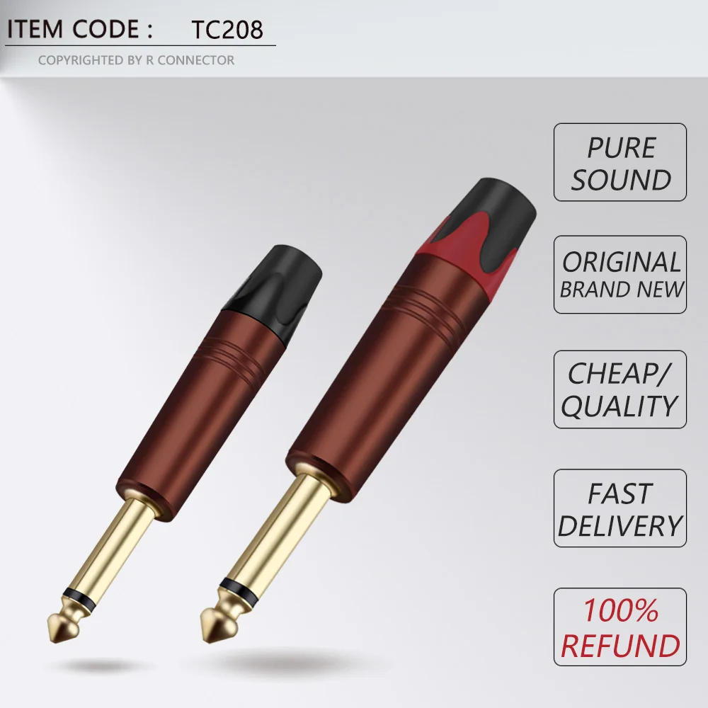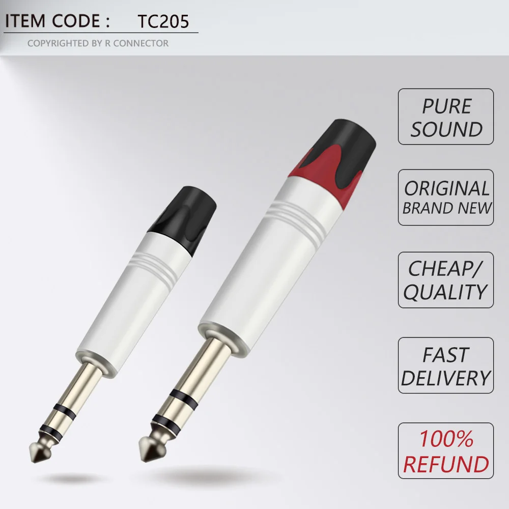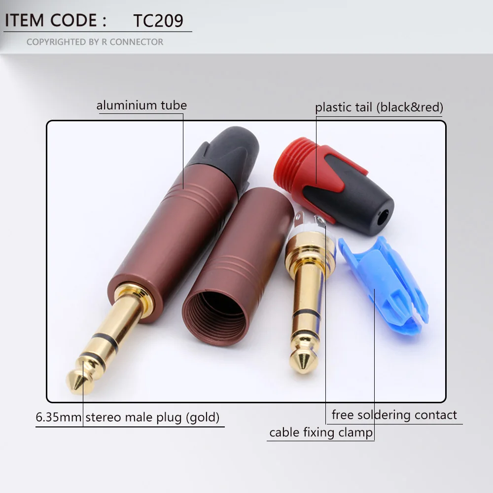10 шт., 3-полюсный стерео-разъем 6,35 мм, 14 дюйма, 6,3 мм, разъем для паяльного провода, позолоченный латунный разъем для микрофона