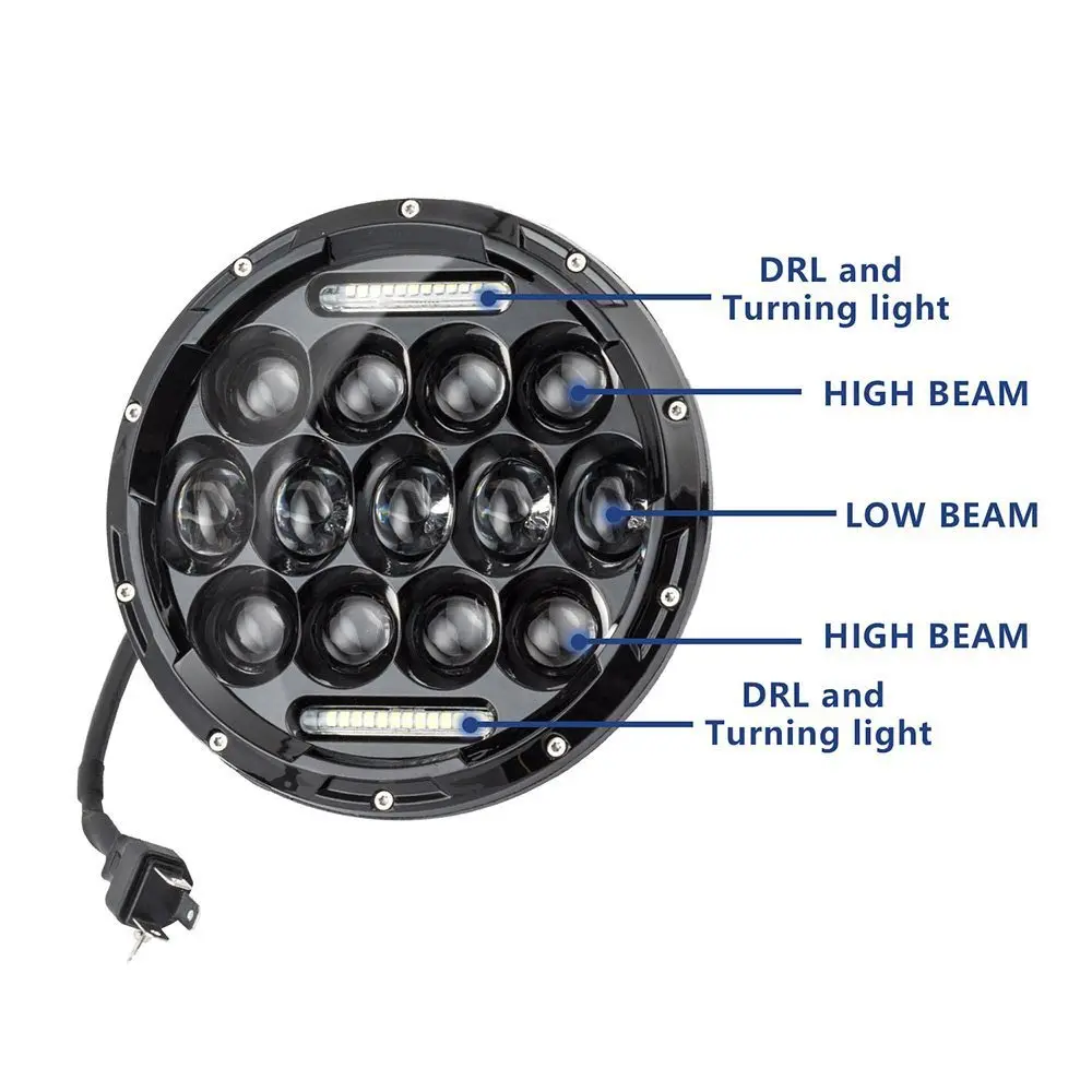 Фары светодиодные круглые, 7 дюймов, ДХОянтарный сигнал поворота дл...