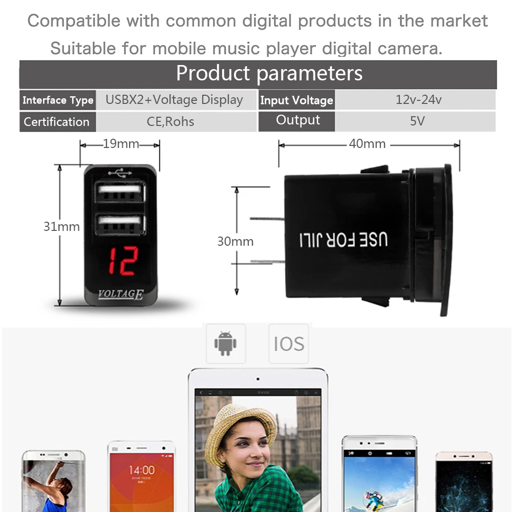 Автомобильное зарядное устройство KWOKKER, 5 В4,2 а, с двумя USB-портами, 12-24 В, 2USB-разъема, адаптер питания светодиодный светодиодным дисплеем напряжения для JILIGSGL