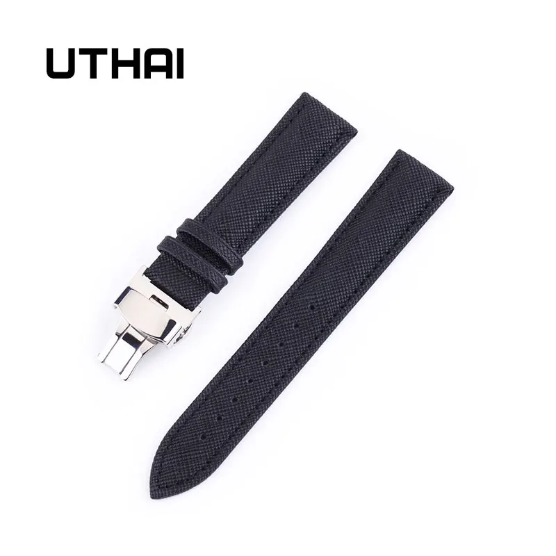 Ремешок для наручных часов UTHAI B01 из натуральной кожи, 12-24 мм, универсальный ремешок с пряжкой-бабочкой, ремешок со стальной пряжкой, браслет + инструмент