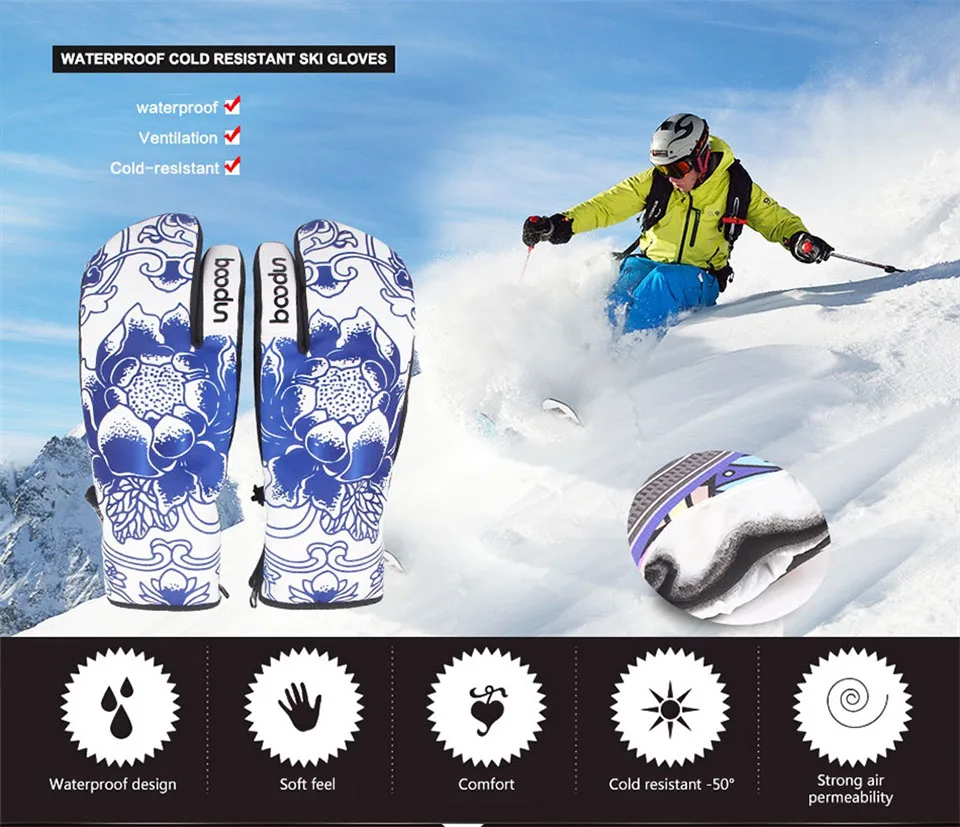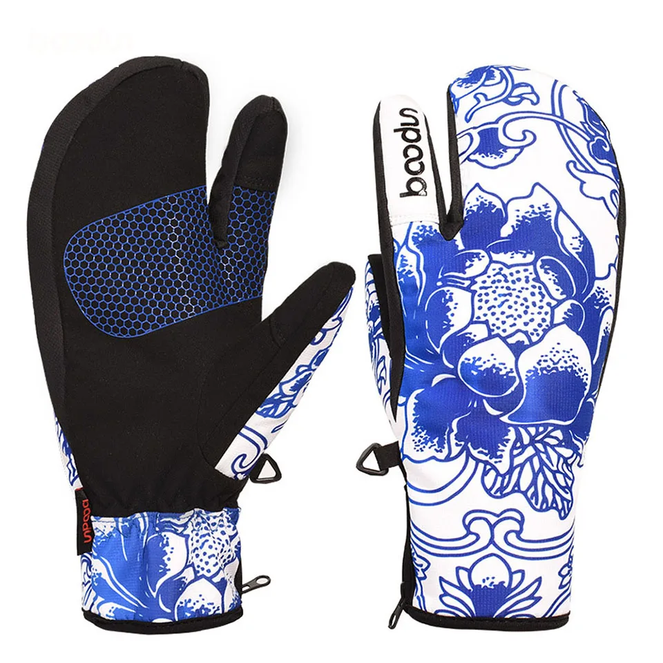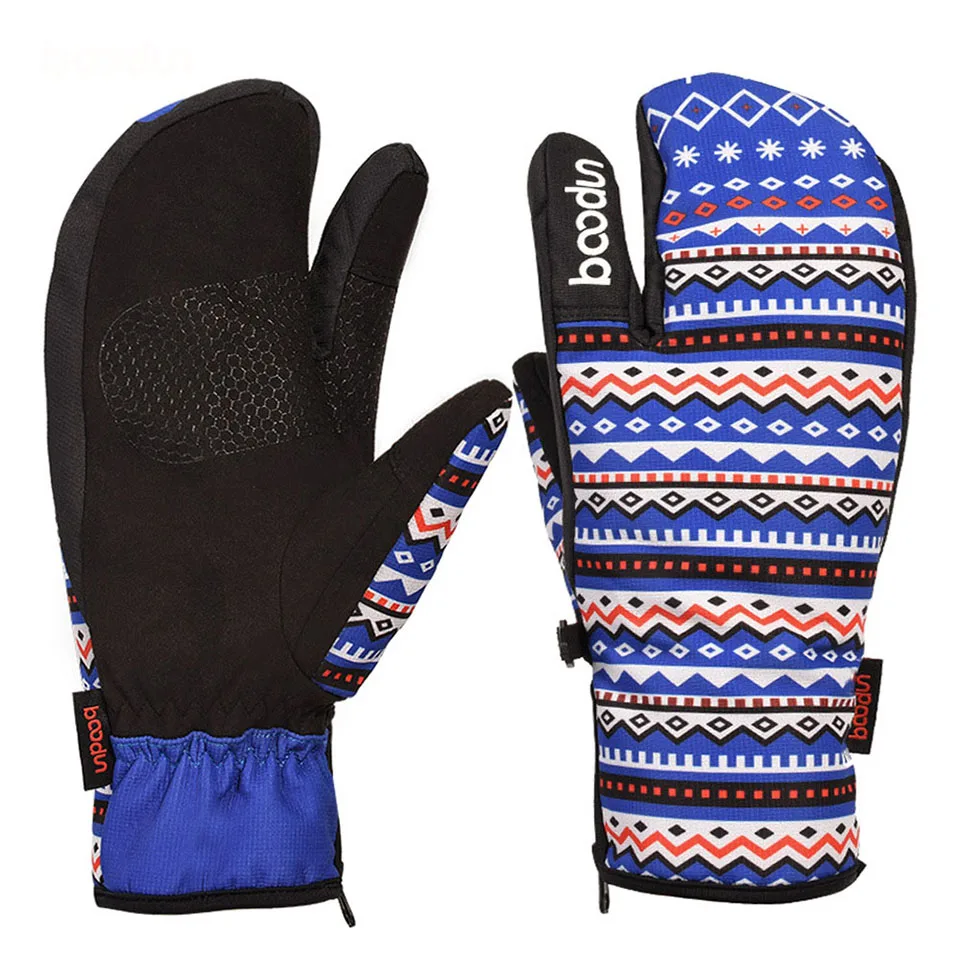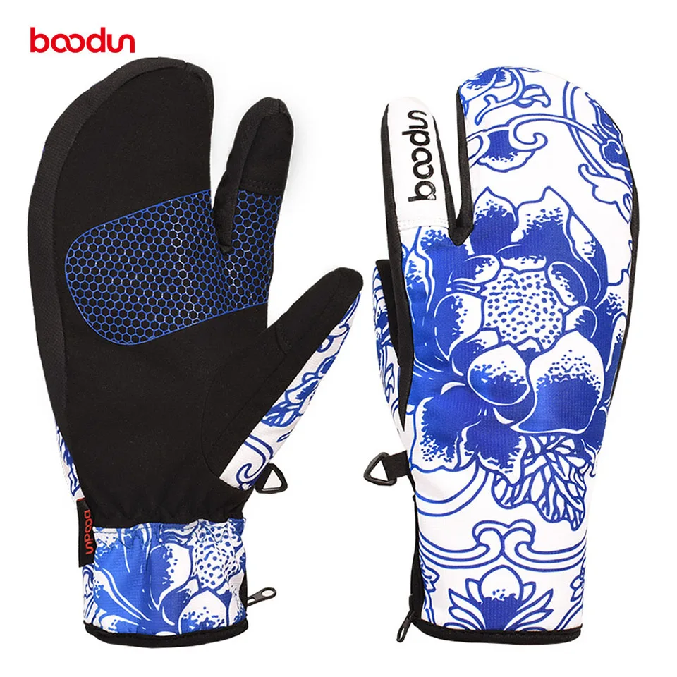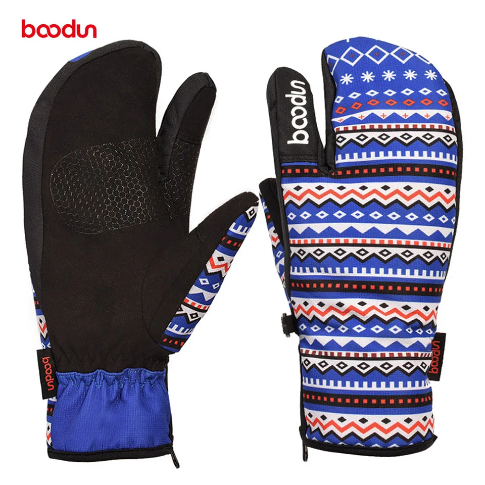 Зимние перчатки Boodun для сноуборда, лыжные перчатки, ветрозащитные водонепроницаемые нескользящие перчатки для катания на лыжах, хлопковые теплые варежки